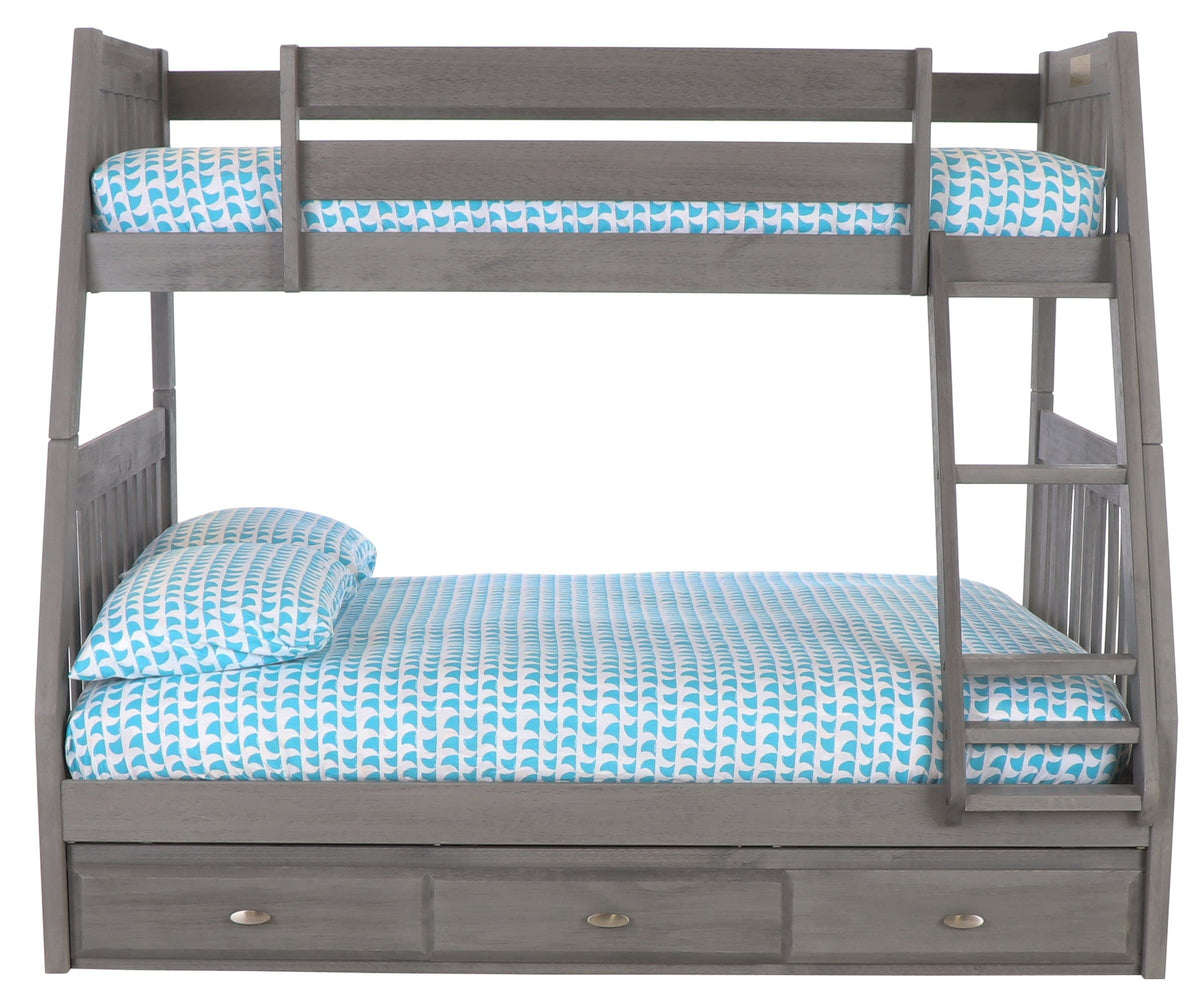 OS Home and Office Furniture Model 3219K3-22 Solid Pine Twin/Full Bunk Bed with Three Drawers in Charcoal Gray