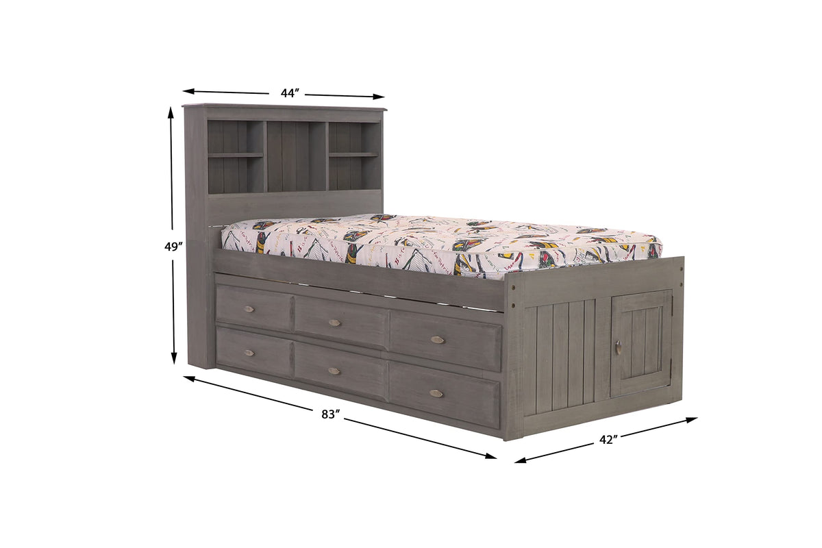 OS Home and Office Furniture Solid Pine Twin Captains Bookcase Bed with 6 Drawers in Charcoal Gray
