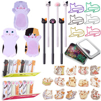 Outus Cat Office Supplies Cute Sticky Notes Paper Clips Gel Ink Pens Cartoon Stickers Party Favor For Cat Lovers Stationery Scho