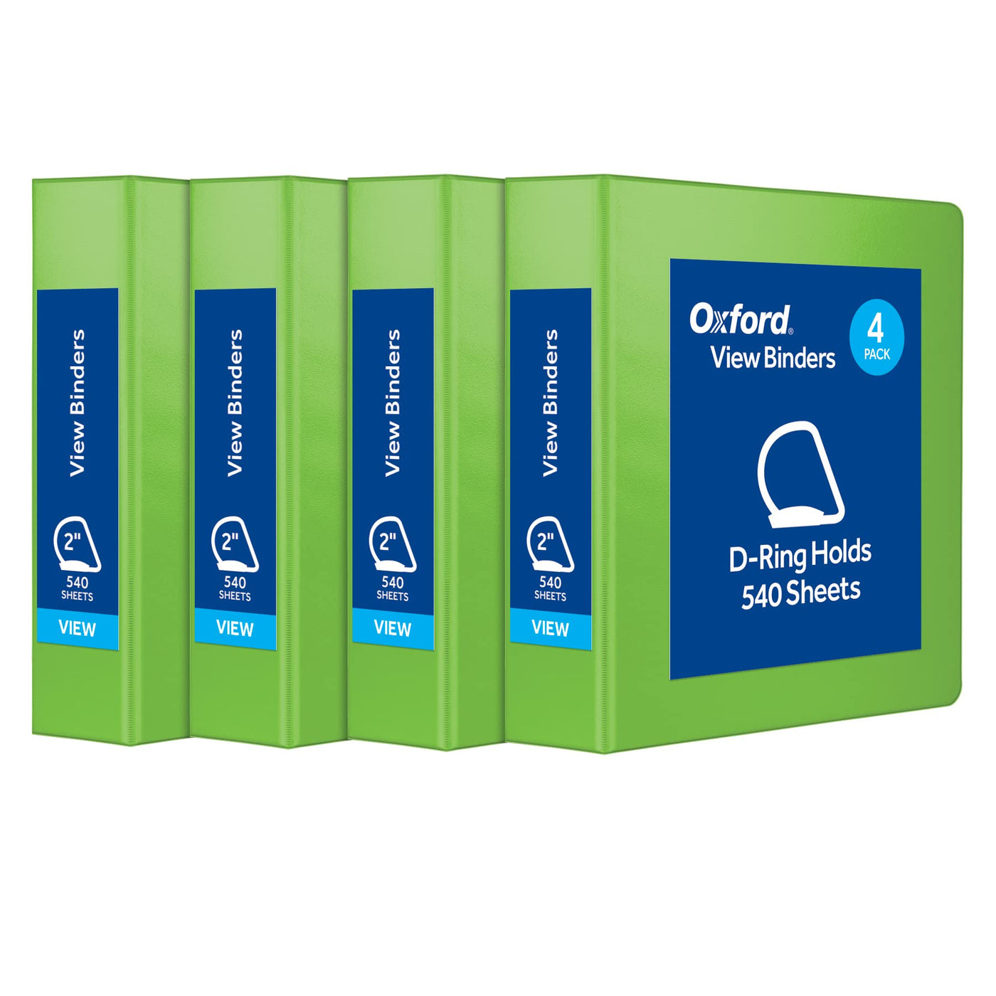 This 4 Pack Of 2Inch Green Oxford 3-Ring Binders Have Non-Locking Slant-D Rings That Hold Up To 540 Sheets Securely; That'S 25% More Than Typical Round-Ring Binders. Customize On All Three Sides For A Professional-Looking Finish From Any Angle. The Clearvue Poly Overlay Is Anti-Glare So Your Message Will Always Shine Through. Two Clear Interior Pockets Make It Easy To Keep A Summary, Table Of Contents, Quick-Facts Or Handouts Within Easy View. Slant-D Rings Are Mounted To The Back Of Your Binder So There Are No Metal Rivets On The Spine In The Spot Where Your Label Should Be. Our Binder Material Is Pvc-Free And Non-Stick So You Won'T Find Ink And Toner From Your Graphics Clinging To A Ruined Cover; That'S Lasting Quality And A Better Value. Each 3 Ring Binder Has Xtralife Cover Hinges That Resist Tearing And Splitting At The Seams Through Demanding Projects, Long Semesters Or Other Endurance Events.