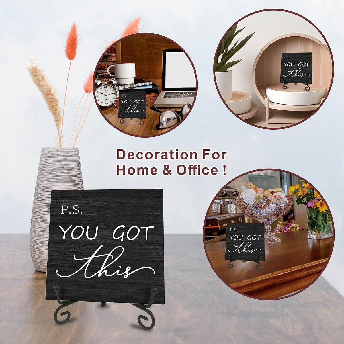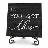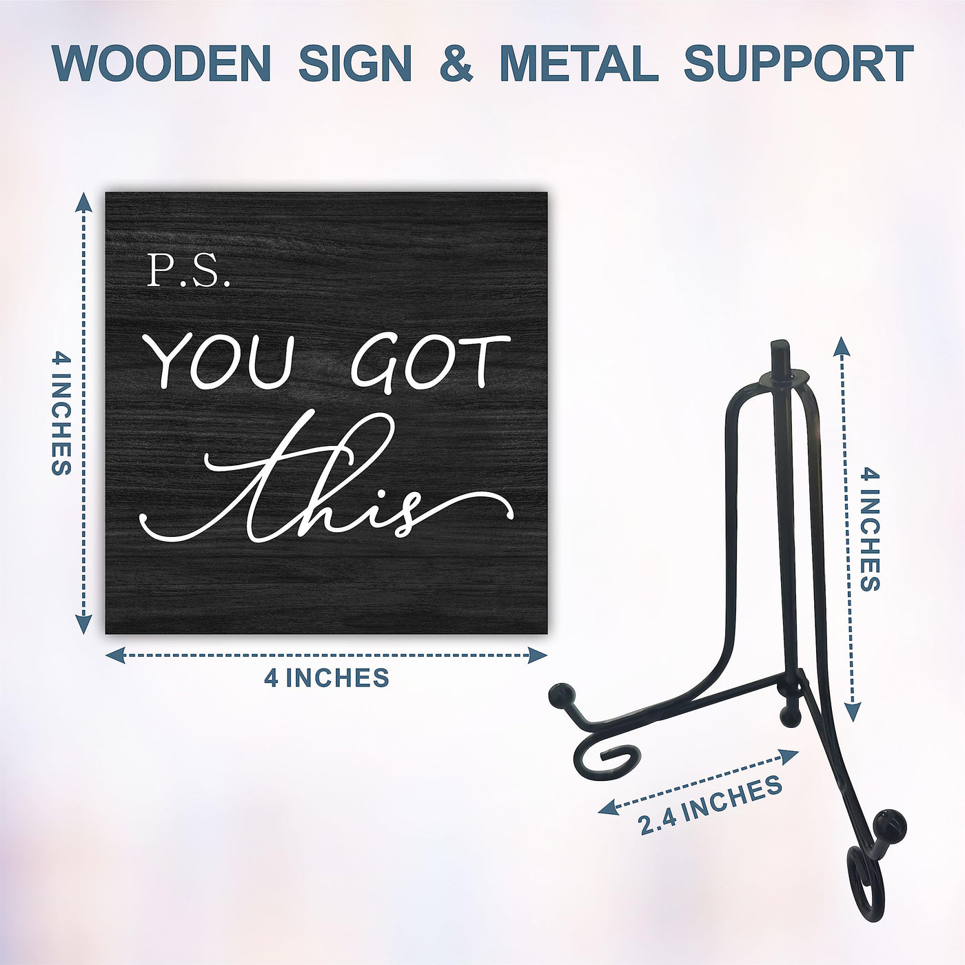 P.S. You Got This! Wooden Sign Gifts - Motivational Wood Plaque With A Support Frame - Home & Office Inspirational Gifts For Wom