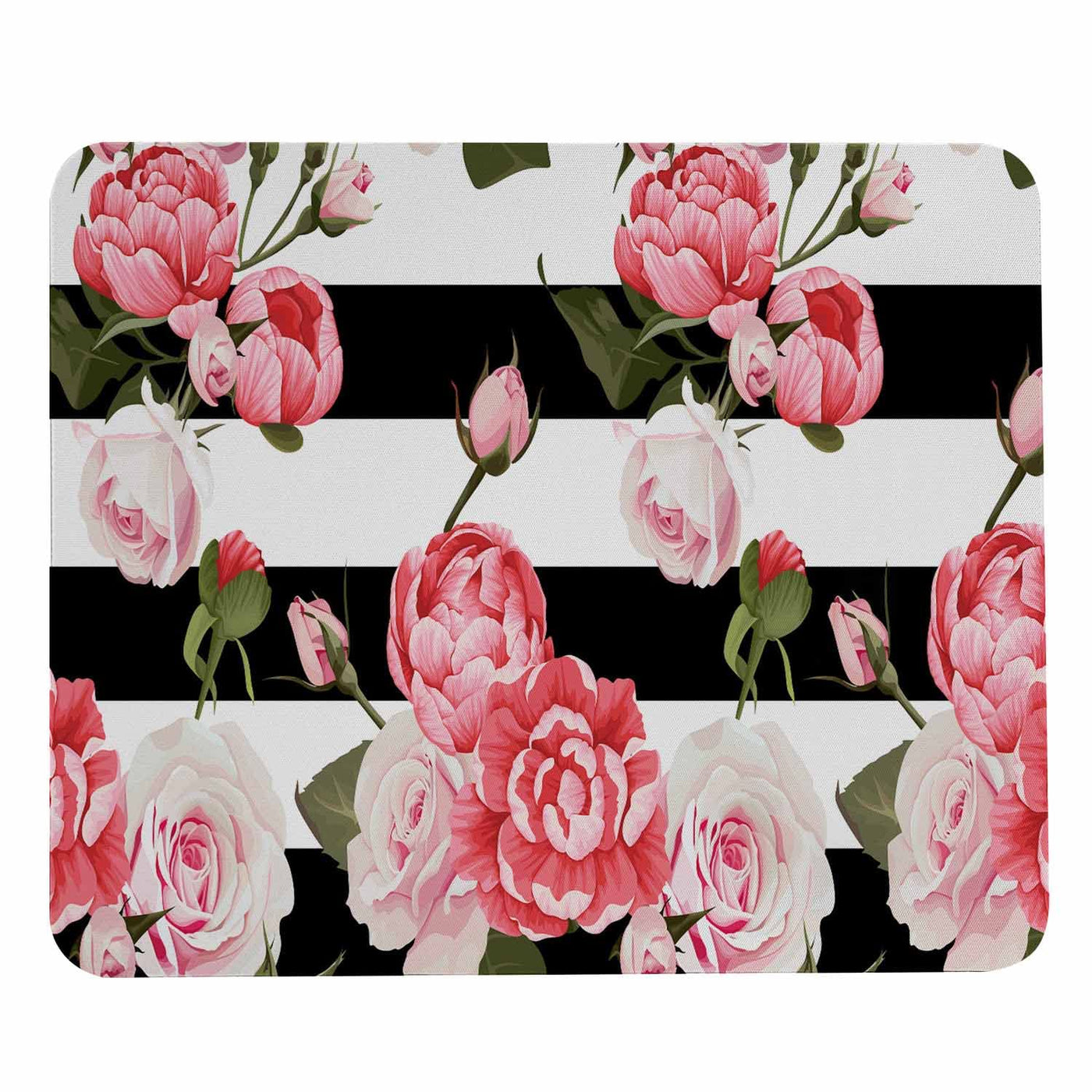 Pehede Mouse Pads Pink Roses Black And White Striped Background,Mouse Pads For Computers Laptop Mouse,Mouse Pads For Home,Office