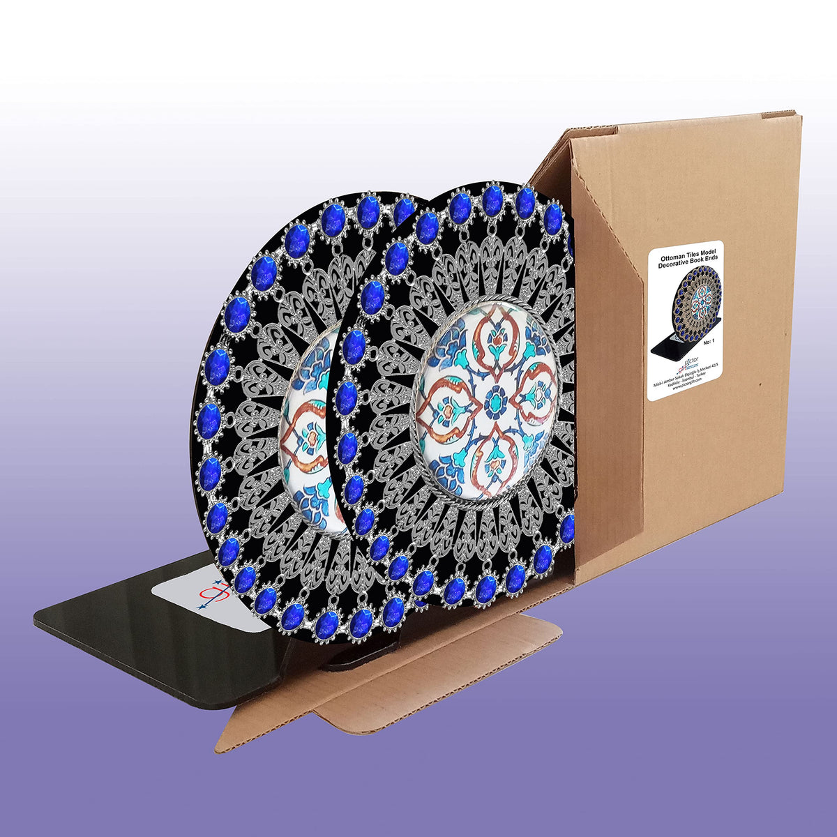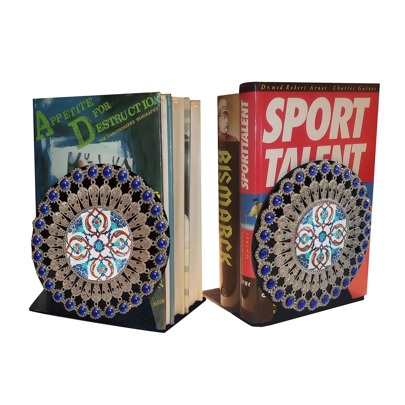 Pictor Gift Ottoman Tiles Model Bookends, Book Ends To Hold Books For Office Home Decorative Metal Heavy Duty Bookends For Shelv