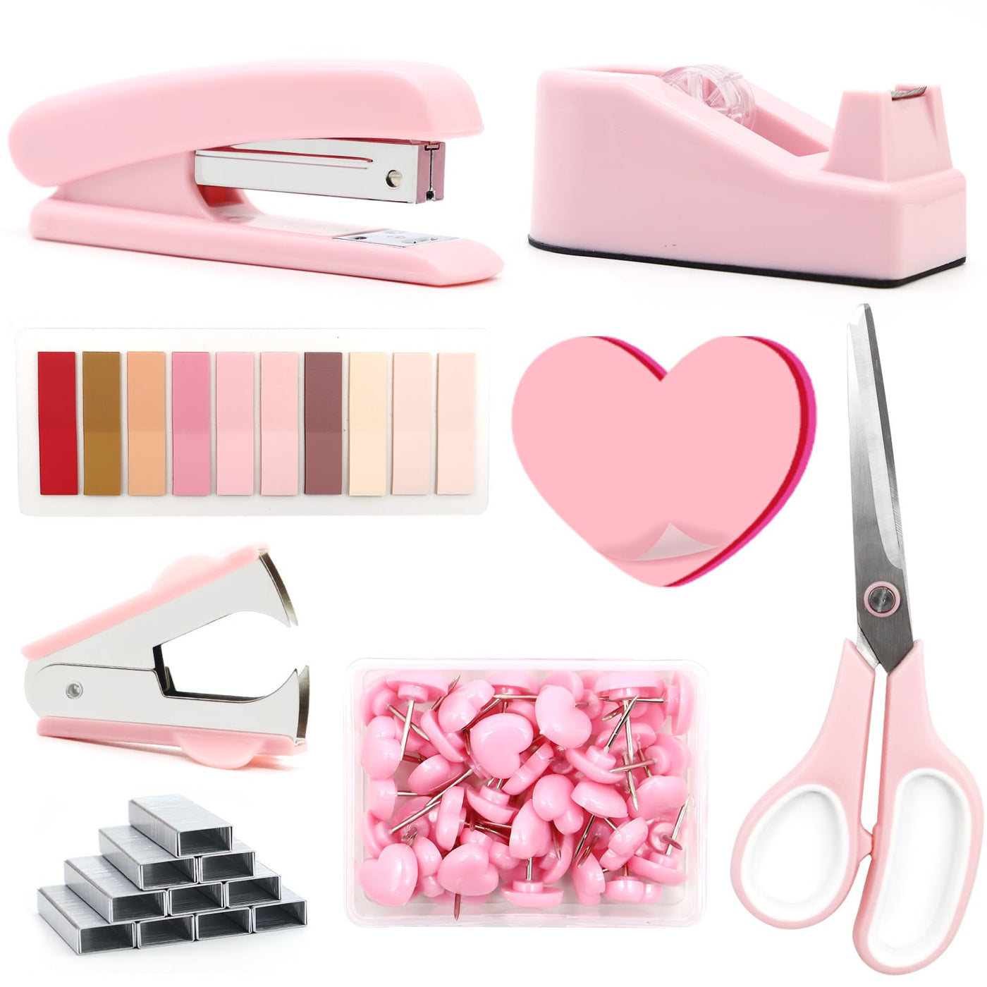 Pink Desk Accessories, Pink Office Supplies, Stapler And Tape Dispenser Set, Pink Desk Accessory Kit, Gift For Students, Women,