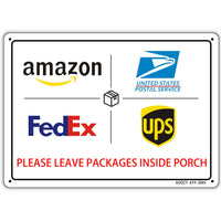 Please Leave Packages Inside Porch - Metal Aluminum Rust Free - 7' X 9.8' Heavy Duty Front Door Office Business Yard, Pre-Dril