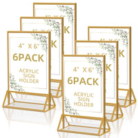 1.The Sign Holder&Nbsp;Size: 5&Nbsp;X 7&Nbsp;Inch2.Acrylic Stands&Nbsp;For Display Quantity: 6 Packs3.Material: High Quality Acrylic4.Color: Clear&Nbsp;Golden 5.Pph-Sisy&Nbsp;Menu Sign Holder&Nbsp;Is Made Of High-Quality Acrylic Material That Is Smooth, Transparent, High-Strength, And Durable And Is Highly Resistant To Dirt And Scratches.He Base Of Each Sign Holder Is Wide And Stable, The Thickness Of The Base Is 10Mm And The Width Is 50Mm. With A Solid Triangular Design, It Can Provide Good Support, So The Double-Sided Acrylic Sign Holder&Nbsp;Can Stand Independently On Any Flat Surface. The Gaps Between The Plastic Display Racks Are Small, So The Paper Can Be Easily Fixed.6.Easy To Use:With A Detachable Design, The Base, And The Panel Are Separate And Easy To Store. Insert The Card From The Bottom Of The Panel, And Then Insert The Triangular Base Vertically. Easy Stand Solid And Stable In Portrait Positions On Table.7.Satisfaction Guarantee:This Package Includes 6 Pieces Of 5&Nbsp;X 7 Inch Table Sign Holder. Each Sign Holder&Nbsp;Has An Opening On Its Side And Bottom For Easy Paper Insertion. Please Feel Free To Contact Us If You Have Any Question About The Sign Holder.8.Tips&Nbsp;:Each Individual Sign Holder&Nbsp;Is Packaged In A Nice Bag To Prevent Scratches And Then Placed Into A Sturdy Box.