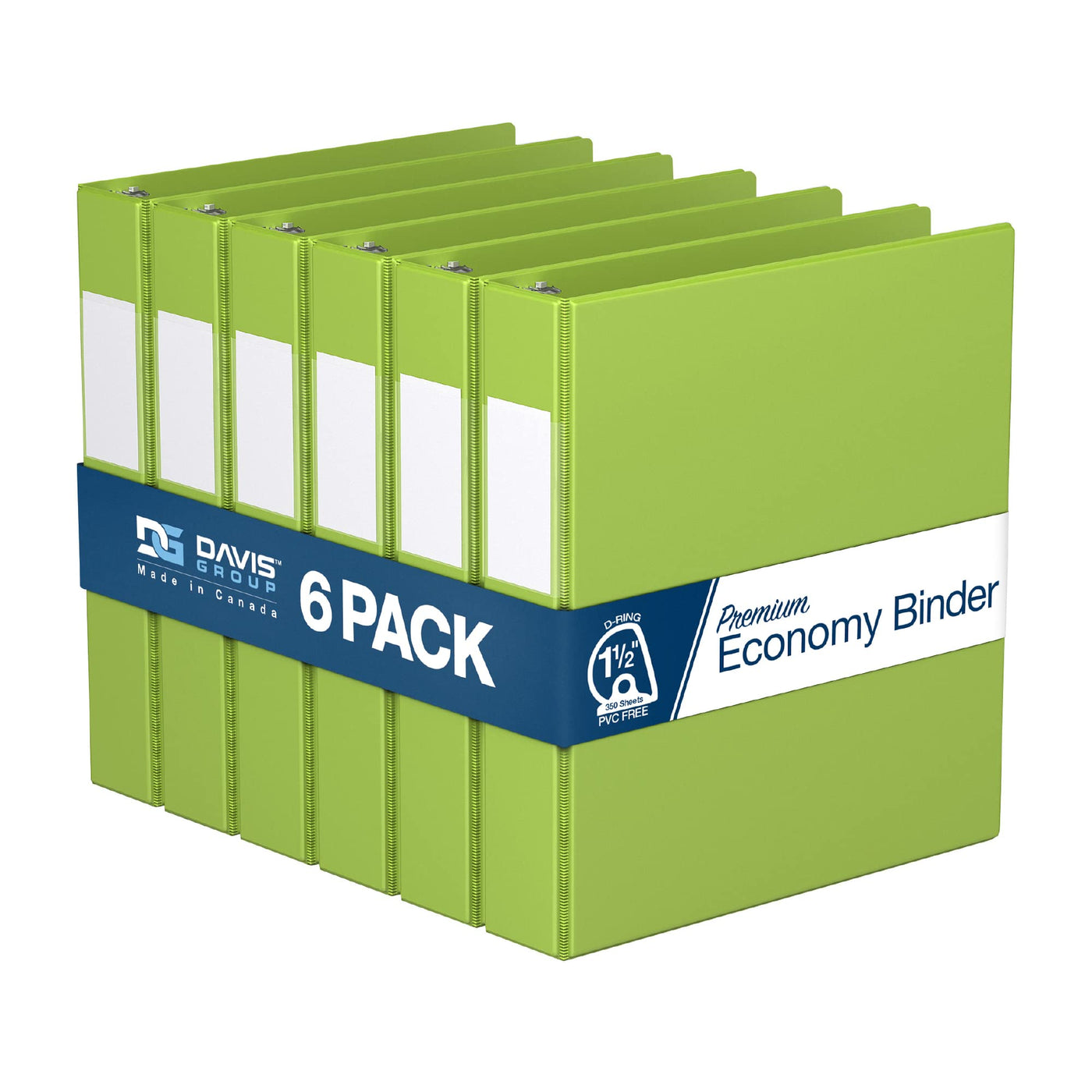 Organize Your Home, Dorm, Or Office With The Premium Economy 6-Pack 3-Ring Binders For School Or Office. Each 3-Ring Binder Features 2 Interior Pockets: 1 Inside The Front Cover And 1 Inside The Back Cover. The Pockets Give You Extra Room To Store Small Items That You Dont Want To Punch Holes In, Such As Artwork, Loose-Leaf Pages, Or Note Cards, And The Clear Material Allows You To See Whats In Each Pocket. Plus, Each Binder Spine Has A Label Holder So You Can Identify The Contents Of The Binder.Whether Youre Looking For Yellow Binders, Red Binders, Or Blue Binders, We Have What You Need. The Different Color Options And The Spine Label Holders Make Organization A Breeze-No Matter How Many Subjects You Have To Juggle. Each Professional Binder Is Made In Canada Of Pvc-Free Polypropylene Material And Will Help You Stay On Top Of Every Subject, Deadline, And Project.Davis Group Is A Privately Owned Canadian Company Dedicated To Providing Premium-Quality Products. We Are Committed To Environmentally Friendly Materials, And We Craft Each Product To Be High-Quality, Accessible, And Environmentally Conscious.