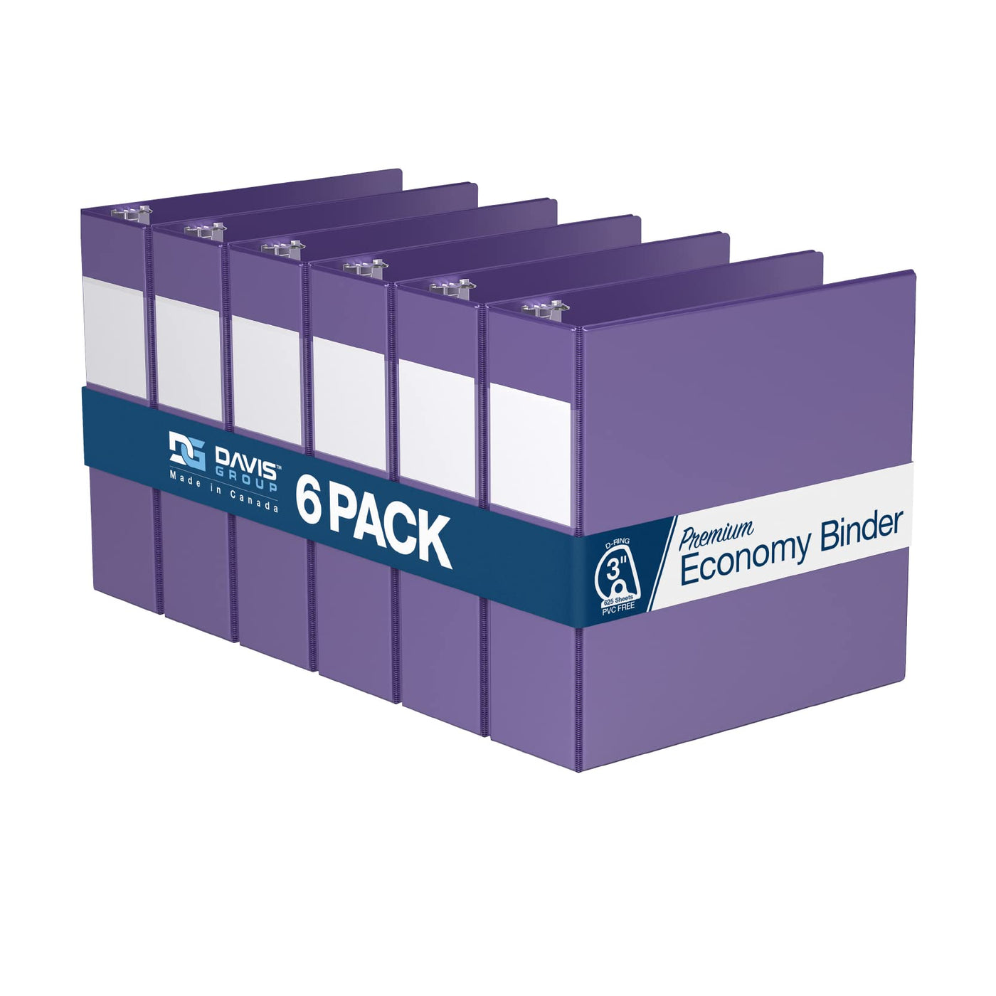 Premium Economy 6-Pack 3-Ring Binders For School Or Office, D-Ring Binders, 3 Inch, Purple