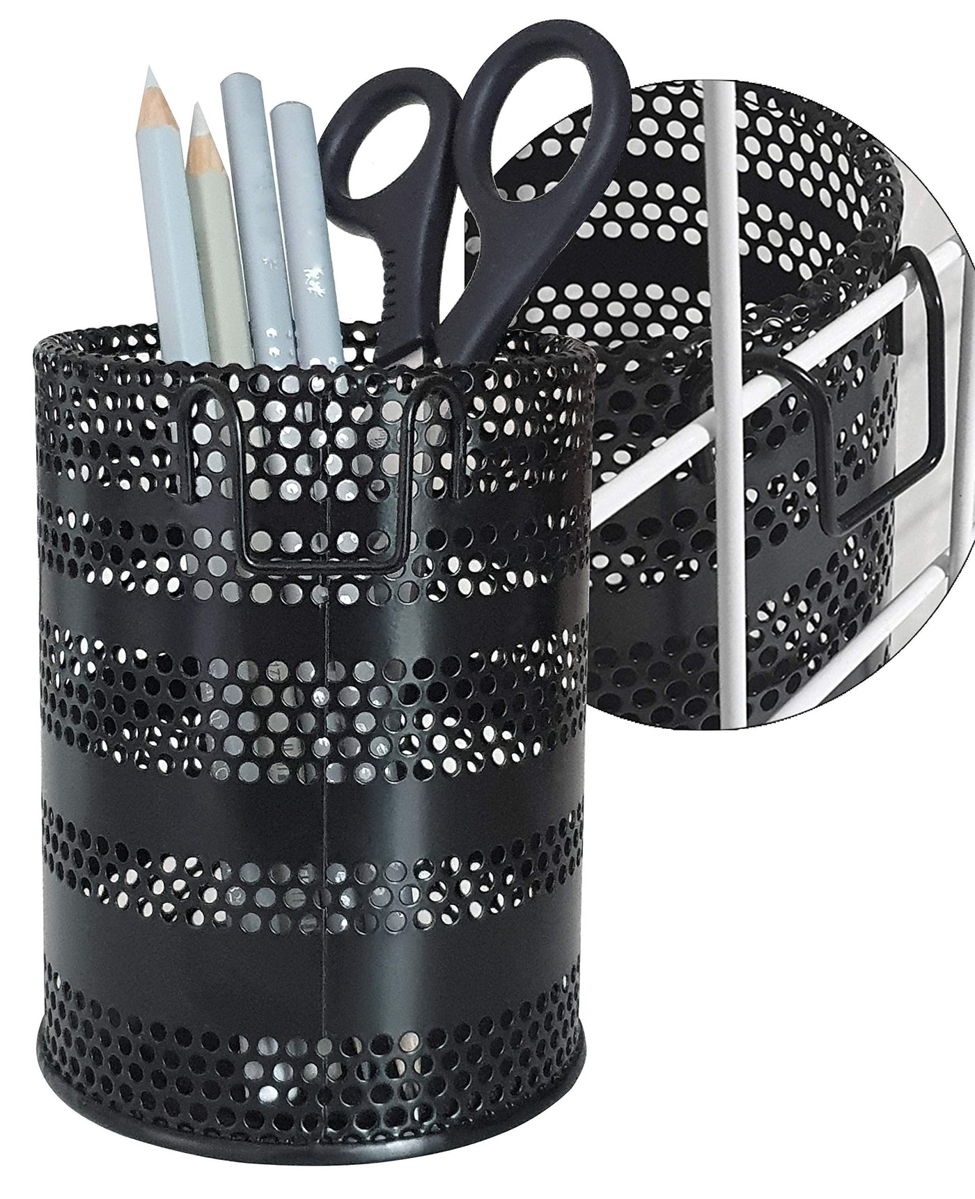 Produco Metal Hook Wall Mounted Pen Pencil Holder, Office Desk Organizer With Hook For Hanging On Wire Mesh Wall Grid Panel (Bla
