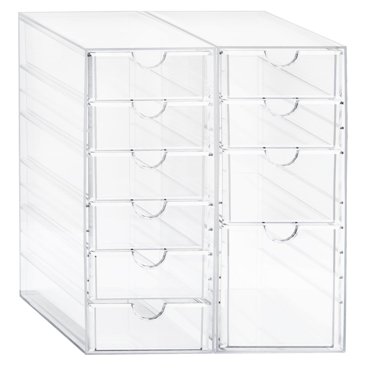 Prsildan Acrylic Drawer Makeup Organizer With 10 Drawers, Set Of 2 Office Desk Organizers Accessories, Clear Stackable Storage D