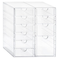 Prsildan Acrylic Drawer Makeup Organizer With 10 Drawers, Set Of 2 Office Desk Organizers Accessories, Clear Stackable Storage Drawers For Vanity, Countertop, Craft, Jewelry, Art Supply Organization