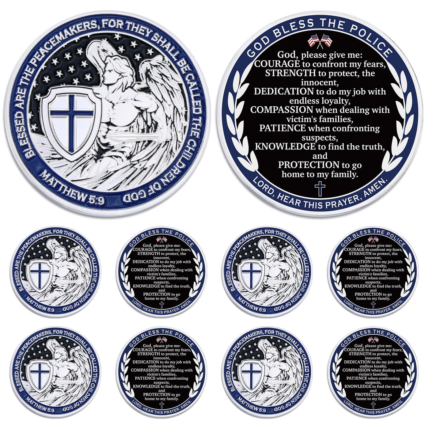 Quelay 10 Pieces Police Challenge Coins Saint Michael Challenge Coins Police Officers Bless Prayer Coins Patron Saint Coins Coll