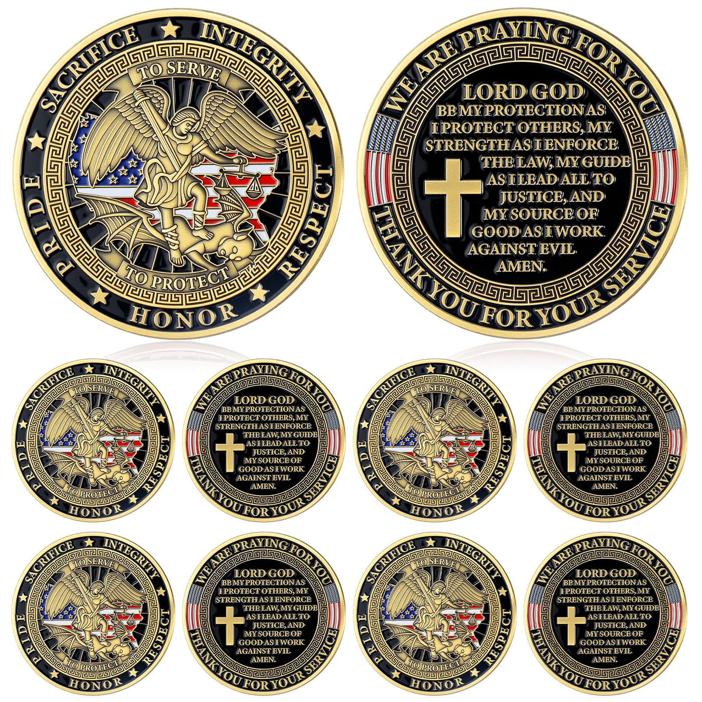 Quelay 10 Pieces Police Challenge Coins Saint Michael Police Officers Bless Prayer Challenge Coins Patron Saint Collectible Gift