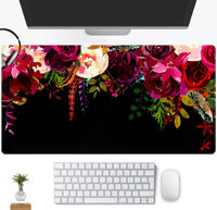 Red Flower Vintage Botanical Desk Pad - Black Mouse Pads, Keyboard Mat, Laptop Pc Wireless Mouse Mat Xxl, Aesthetic Office Desk