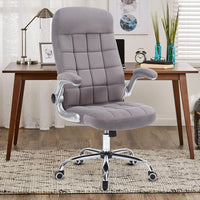 Reficcer High Back Fabric Office Chair, Velvet Executive Desk Chair With Flip-Up Arms
