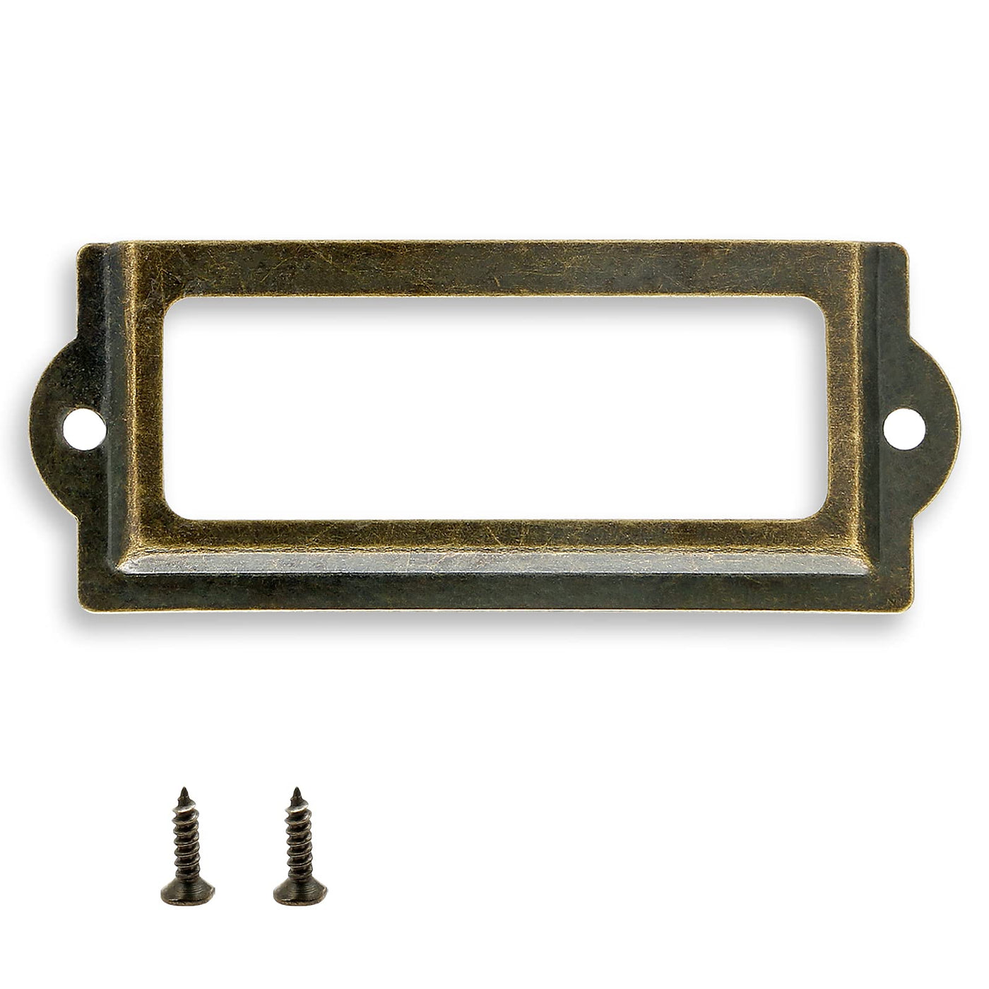 Rierdge 30 Pcs Antique Label Holder, 3.3 Inch Long Metal Office File Cabinet Shelves Drawer Name Card Label Holder Frames With S