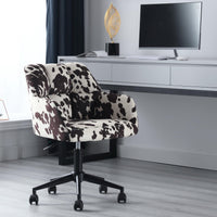 Rivova Office Chair Cow Velvet Desk Chair With Wheels And Arms Modern Home Office Chair Vanity Chair, 360 Swivel Seat With Adjustable Height We Office Chairs Can Satisfy All Your Daily Needs, They Are Ergonomically Designed, Mid Back, Soft High-Density Sponge Cushion, With Adjusting Lever To Adjust The Seat Height To Reach Your Ideal Height. Whether You Are Working, Gaming Or Relaxing, Rivova Mid Back Office Chairs Provide Sleek And Sophisticated Support For All-Day Comfort. Features: 360 Rolling &Amp; Swivel Adjustable Height Stable &Amp; Sturdy Easy To Assemble Best Gift Idea Perfect For The Office Table, Dresser Table,Computer Room And Task Workplace Specifications: Back Height: 16.7' To Seat Floor To Seat Height: 18'-22' Seat Width &Amp; Depth: 18.2'X 17' Seat Pad Thickness: 3.5' Materials: Velvet + Foam + Metal Base Colour: Cow Weight Capacity: 250Lbs Packing: 1 X Home Desk Chair; Screws And Installation