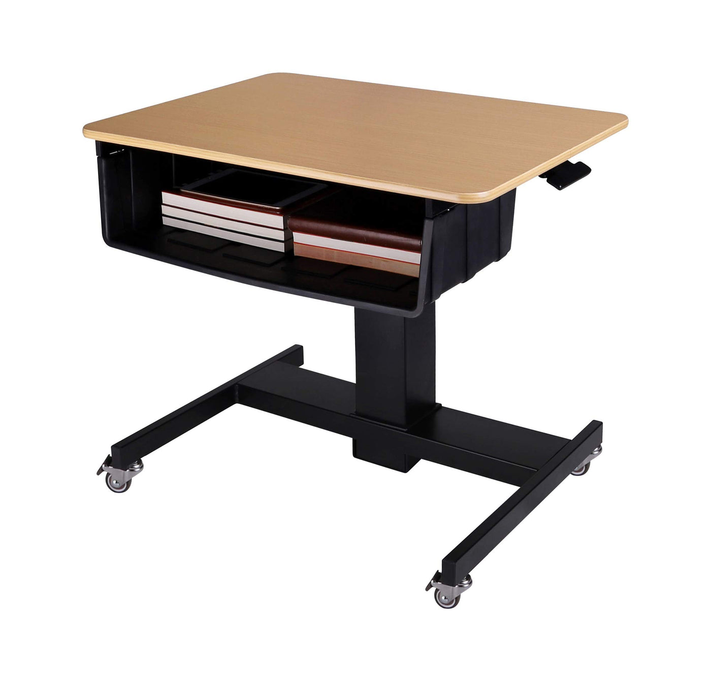Rocelco MSD-28 – 28" wide Sit-to-Stand School Desk earns top marks to help kids to focus and concentrate better while staying more physcially active, and avoid becoming fidgety and restless from sitting too long.GSMA (Gas Spring Motion Assist) provides easy continuous height adjustment from sitting to standing position, simply by squeezing the convenient side handle. From small to tall, the 25.5" - 42" height adjustment fits students from elementary through high school . Includes 2" lockable casters for stationary or mobile use, so it can be effortlessly rolled to another classroom. Rocelco MSD-BB – Book Box for MSD-28. The Book-Box fits under the top of the Rocelco 28" Sit to Stand Mobile School Desk. and provides a place for students to store their books.