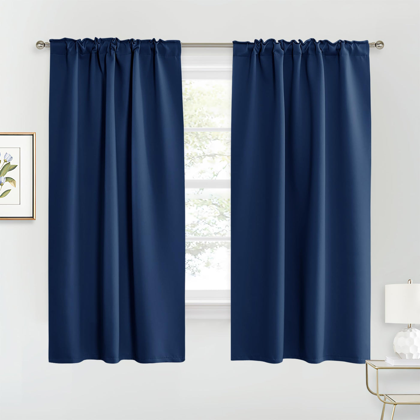 Ryb Home Blackout Curtains For Living Room, Back Tab & Rod Pocket Top Insulating Window Decor For Bedroom Dining Classroom Home Office, W 62 X L 63, Navy, 2 Panels