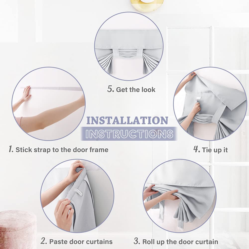 Ryb Home Self-Adhesive Curtains Hang Without Curtain Rod Curtains Can Block 85-95% Sunlight And Uv Rays ( Dark Color Works Better ). The Energy Efficiency Door Curtains Minimize Heating And Cooling Costs While Preventing Your Furniture From Sun Exposure.