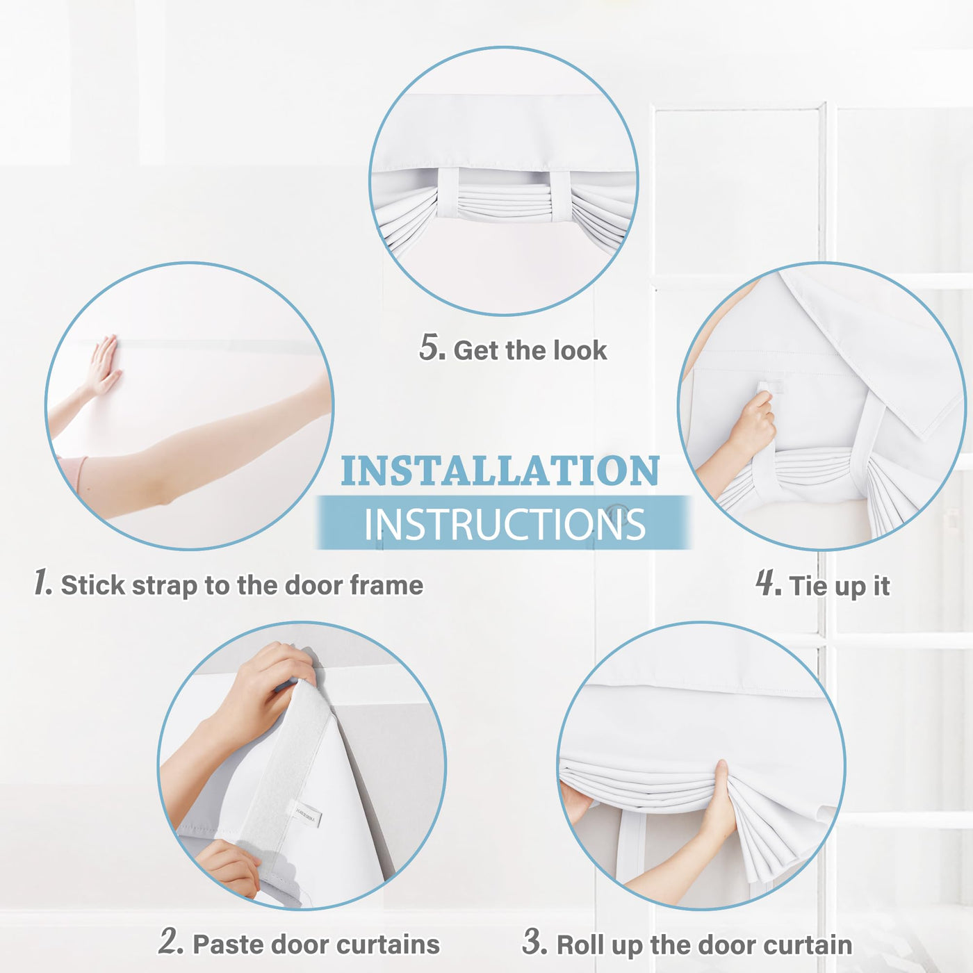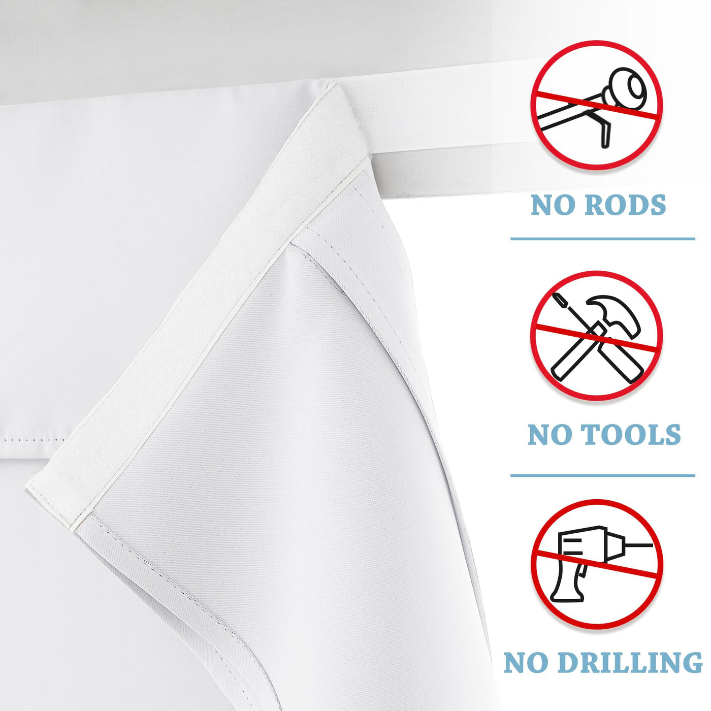 Ryb Home Self-Adhesive Curtains Hang Without Curtain Rod Curtains Can Block 85-95% Sunlight And Uv Rays ( Dark Color Works Better ). The Energy Efficiency Door Curtains Minimize Heating And Cooling Costs While Preventing Your Furniture From Sun Exposure.