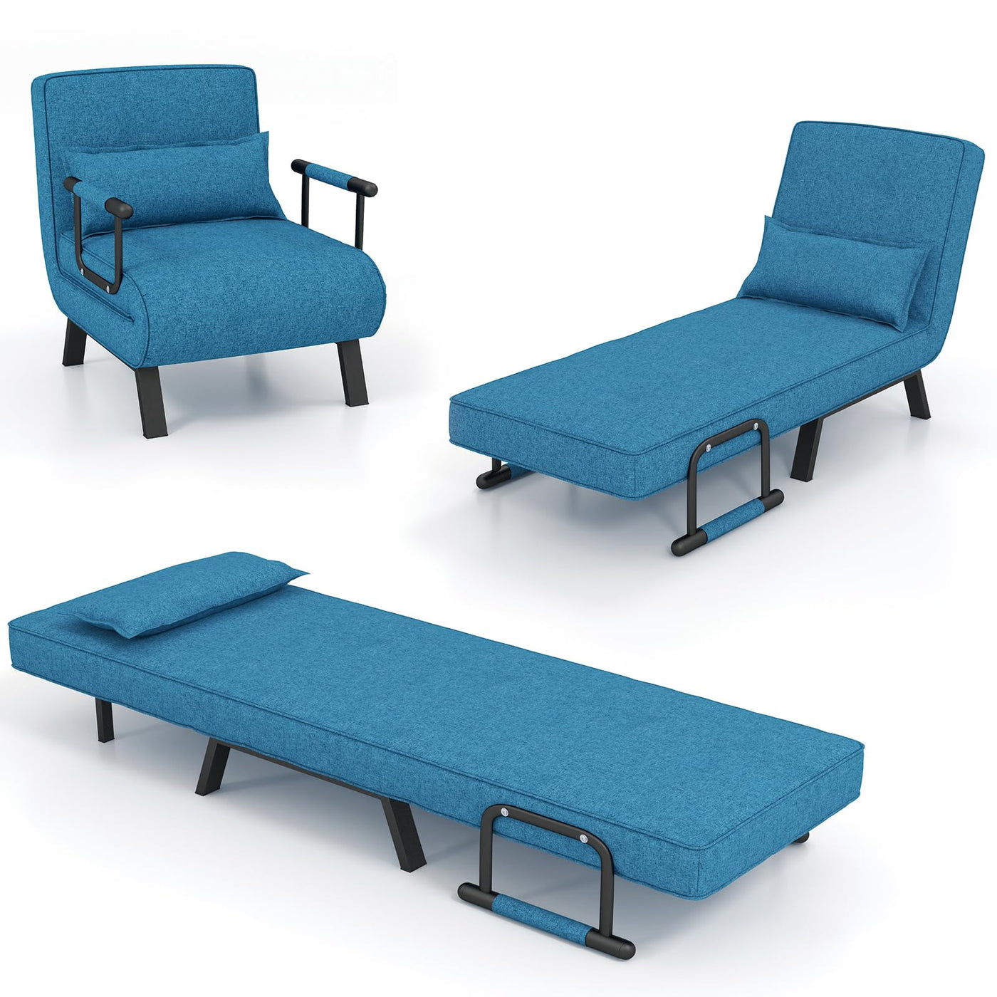 S Afstar 4 In 1 Convertible Sofa Bed Sleeper Chair, Folding Sofa Arm Chair With Pillow And 6 Position Adjustable Backrest, Full Padded Lounger Couch Bed For Home/Office (Blue)