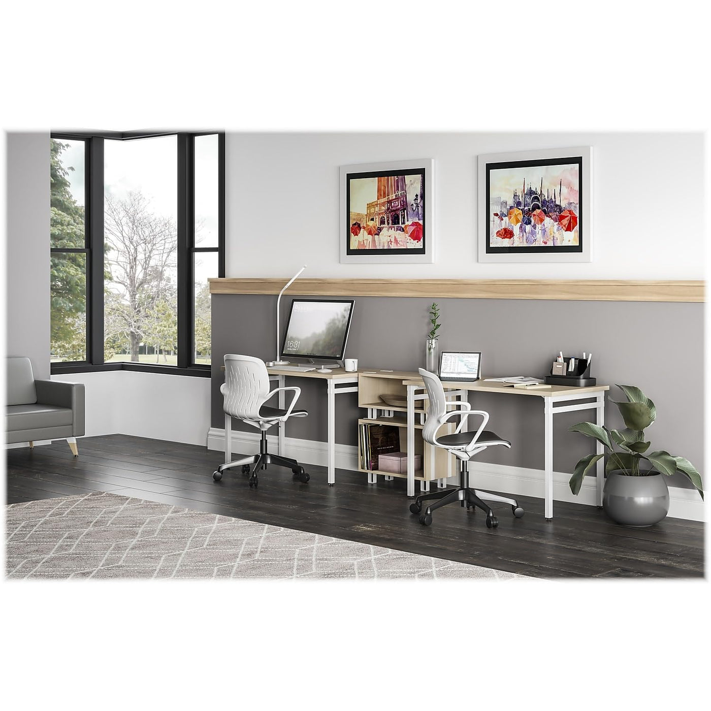 Keep your home office or learning space organized with this versatile 17.25”H storage unit. Stack it up to three high to create a multi-functional room divider with easy-to-access storage for office supplies. With beige wood laminate and a modern white steel powder coat frame, this storage unit blends seamlessly with any décor. It’s a quick-shipping, easy-to-assemble organizer that’s made in the USA, guaranteeing quality and quick, damage-free delivery. Mix up your look by pairing it with the shorter, 12.25”H Safco Ready Home Office Stackable Storage. Hardware and tools for attaching the units are included.