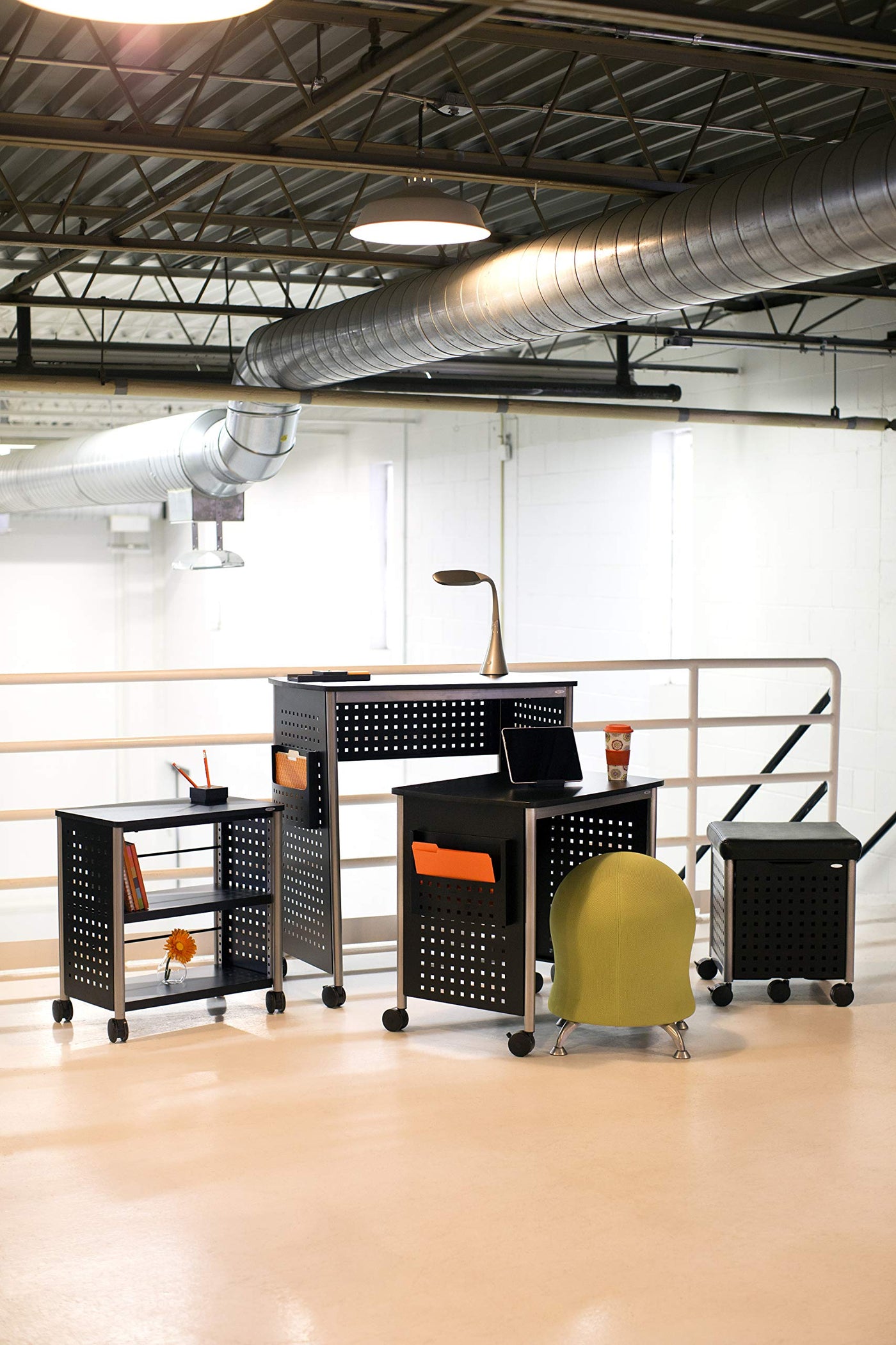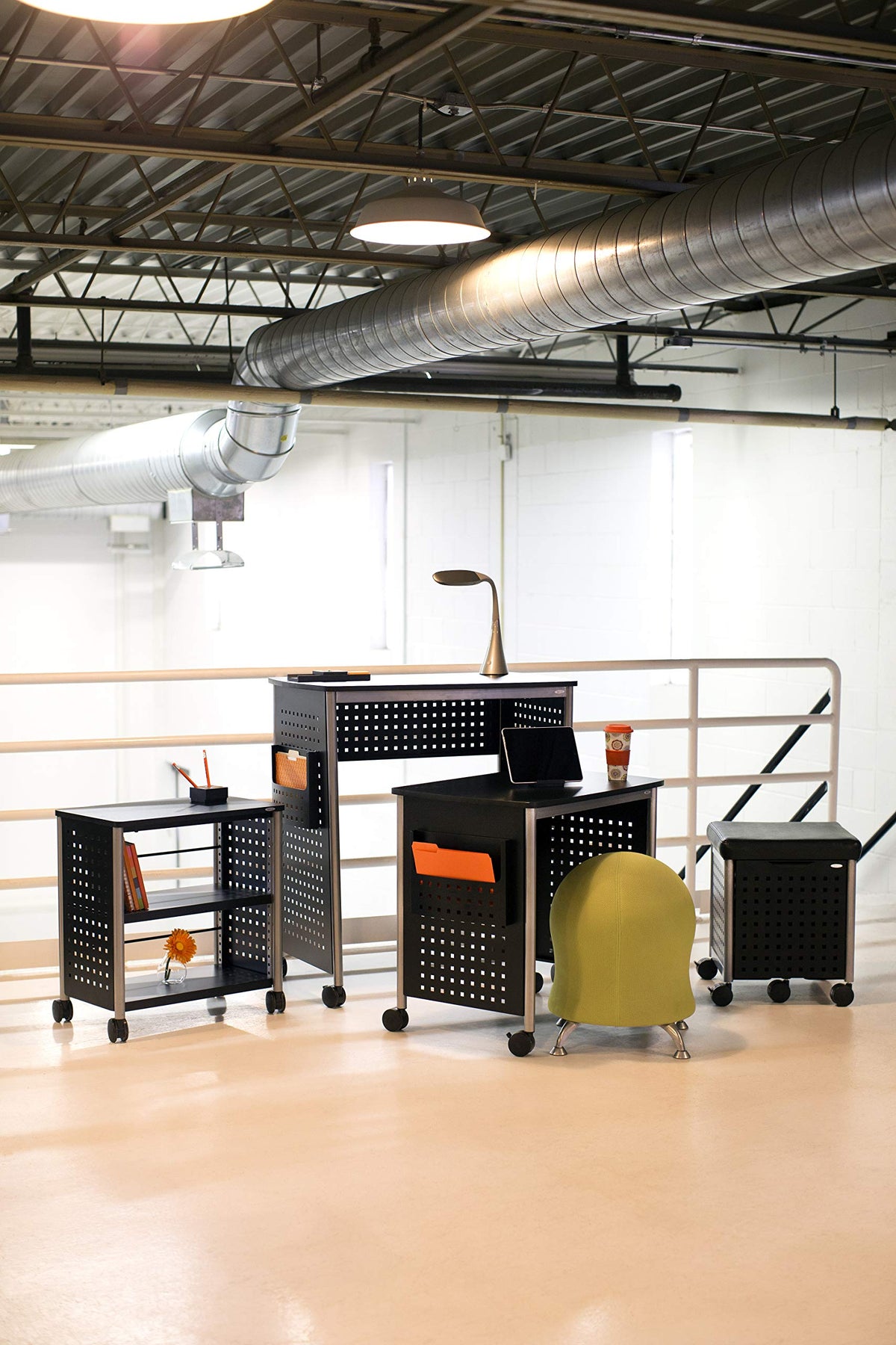 Safco Products 1907BL Mobile Rolling Sit and Stand Workstation, Low Profile Side Organizer, Ideal for Home, Office and Classroom, Black