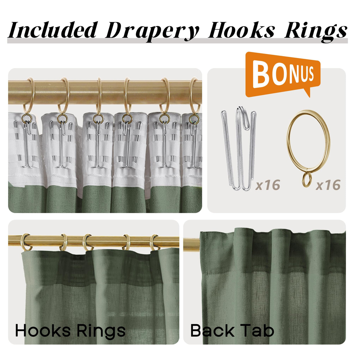 Shineland Dark Green Curtains 96 Inches Long 2 Panel Set For Office,Decorative Sheer Linen Earth Tone Moody Boho Curtains For Christmas Living Room Bedroom