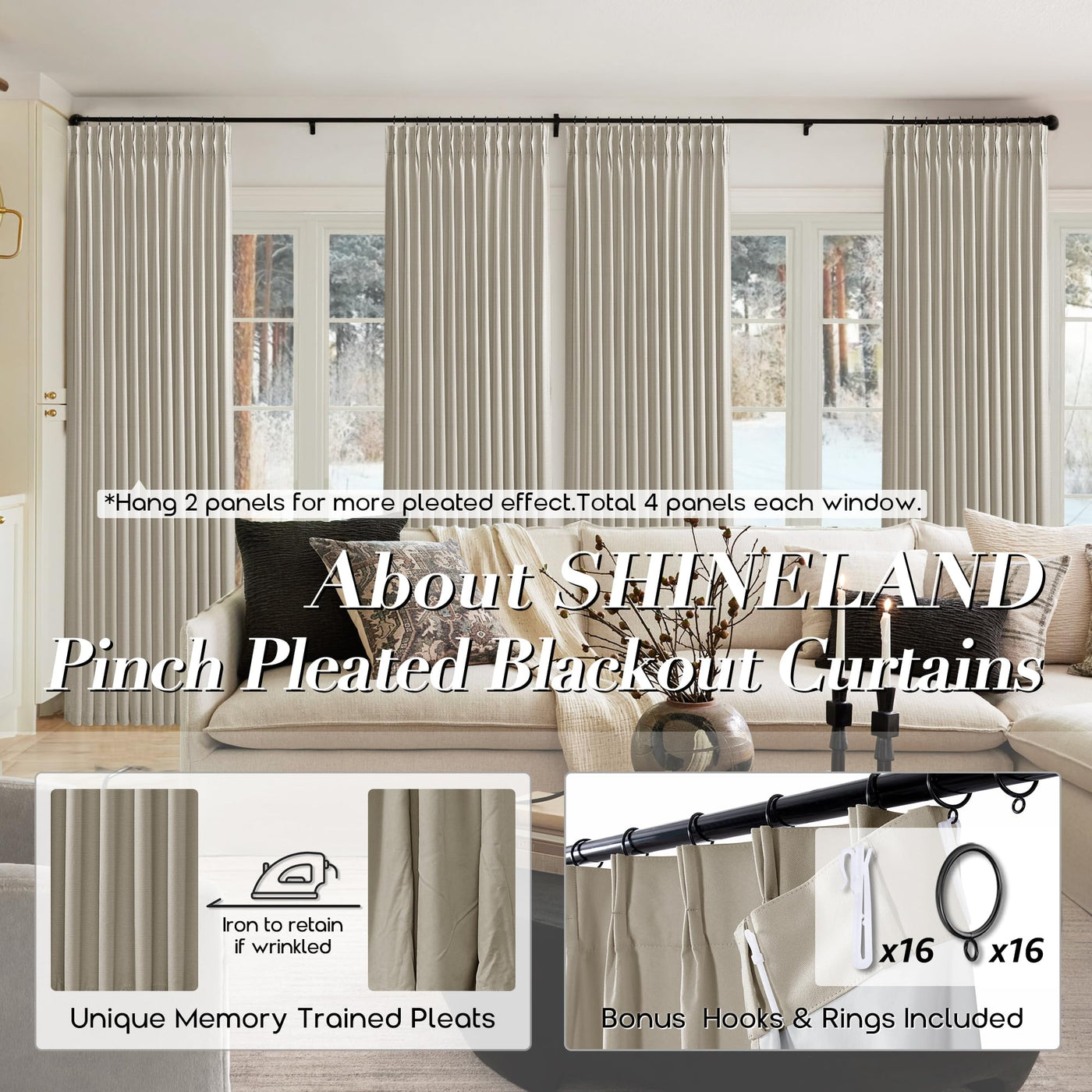 Tailored Memory Shape Pleats:Unlike other pinch pleat curtains difficult to care for or hanging ugly.SHINELAND pinch pleated curtains feature professional memory shaped trained craftsmanship.Drape straight and high end looking just like a custom made window treatments designed by big budget designer or famous brands.