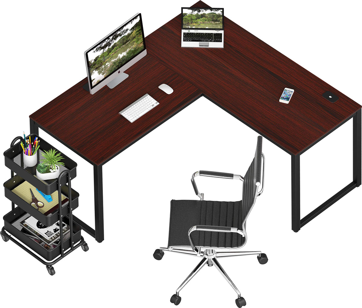 SHW Home Office 55'x60' Large L Shaped Corner Desk, 24' Deep, Cherry