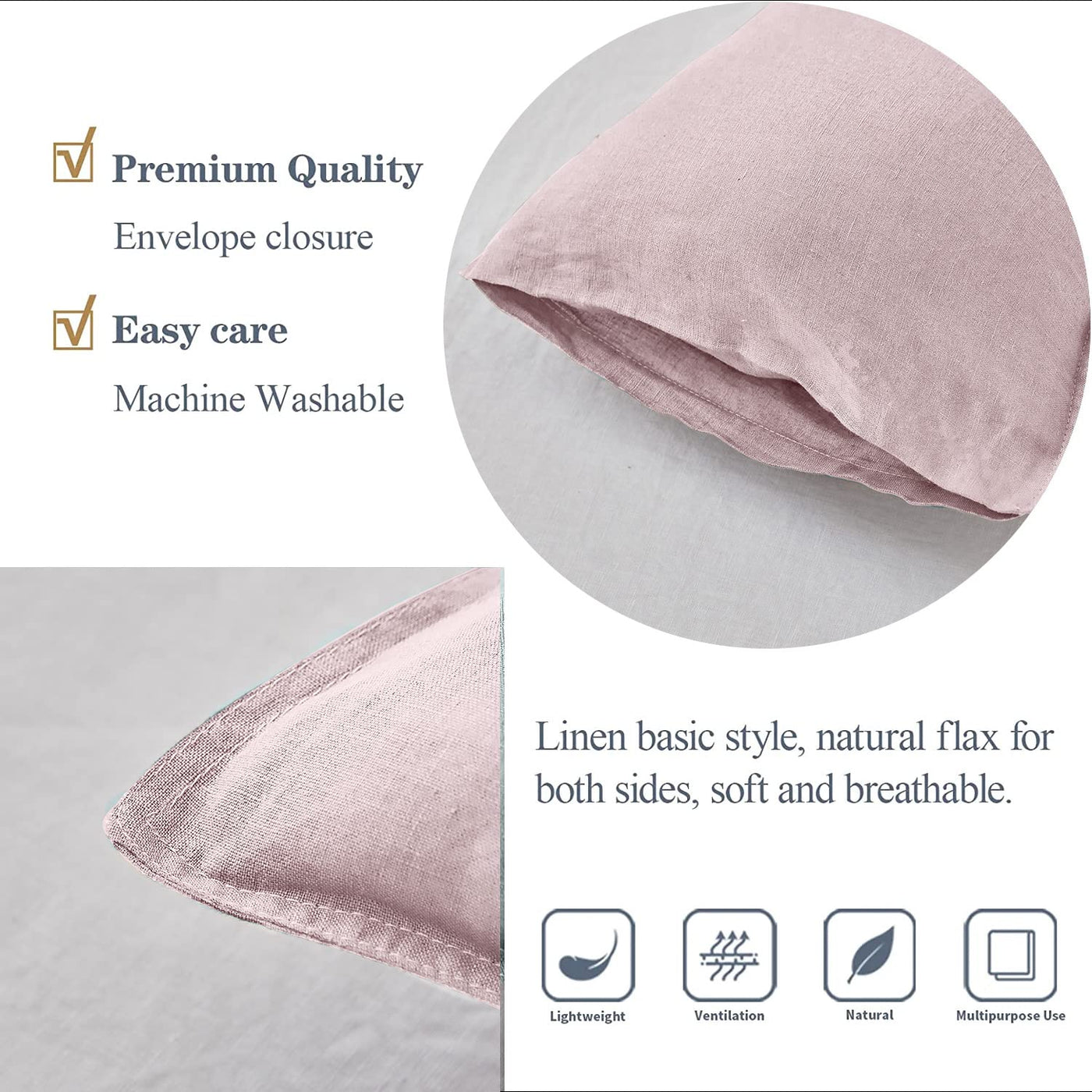 Simple&Opulence 100% Linen Lumbar Pillow Cover 12 X 20 Inches Set Of 2 Rectangular Decorative Throw Cushion Cover For Couch Sofa Bed Living Room Office Soft Breathable Farmhouse - Blush Pink