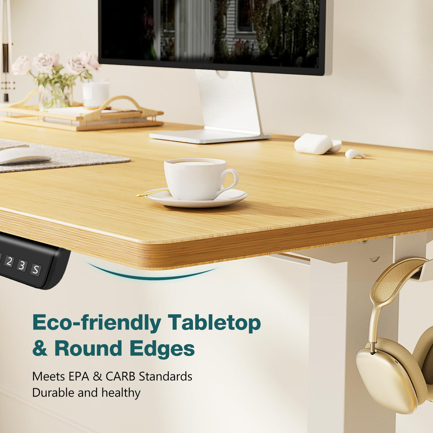 Smug Standing Desk, Adjustable Height Electric Sit Stand Up Down Computer Table, 40X24 Inch Ergonomic Rising Modern Lift Motorized Gaming Desktop Workstation For Work Home Office, Natural
