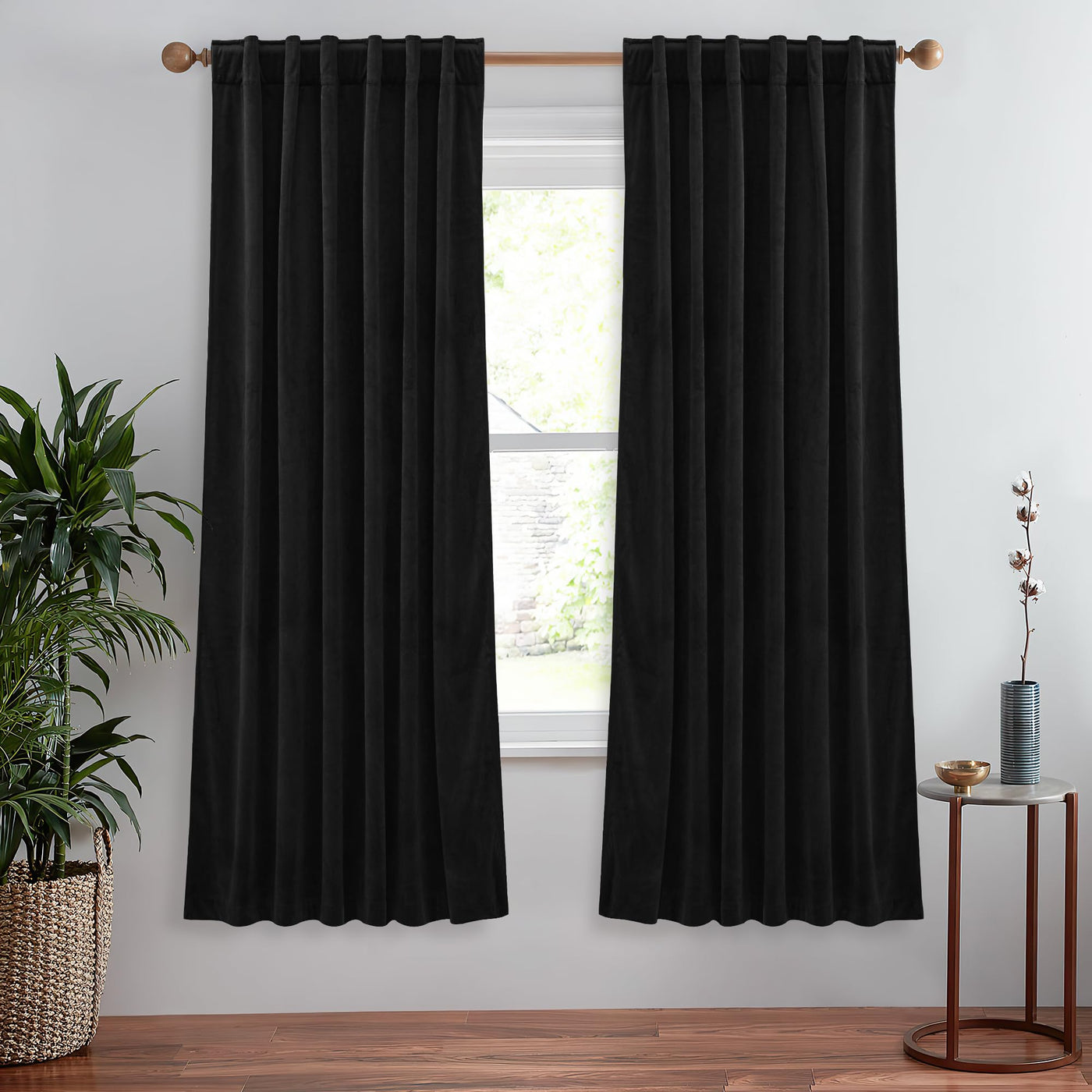 Stangh Blackout Velvet Curtains 72 Inches Long, Thick Black Window Curtains For Kitchen/Office, Thermal Insulation Privacy Prote