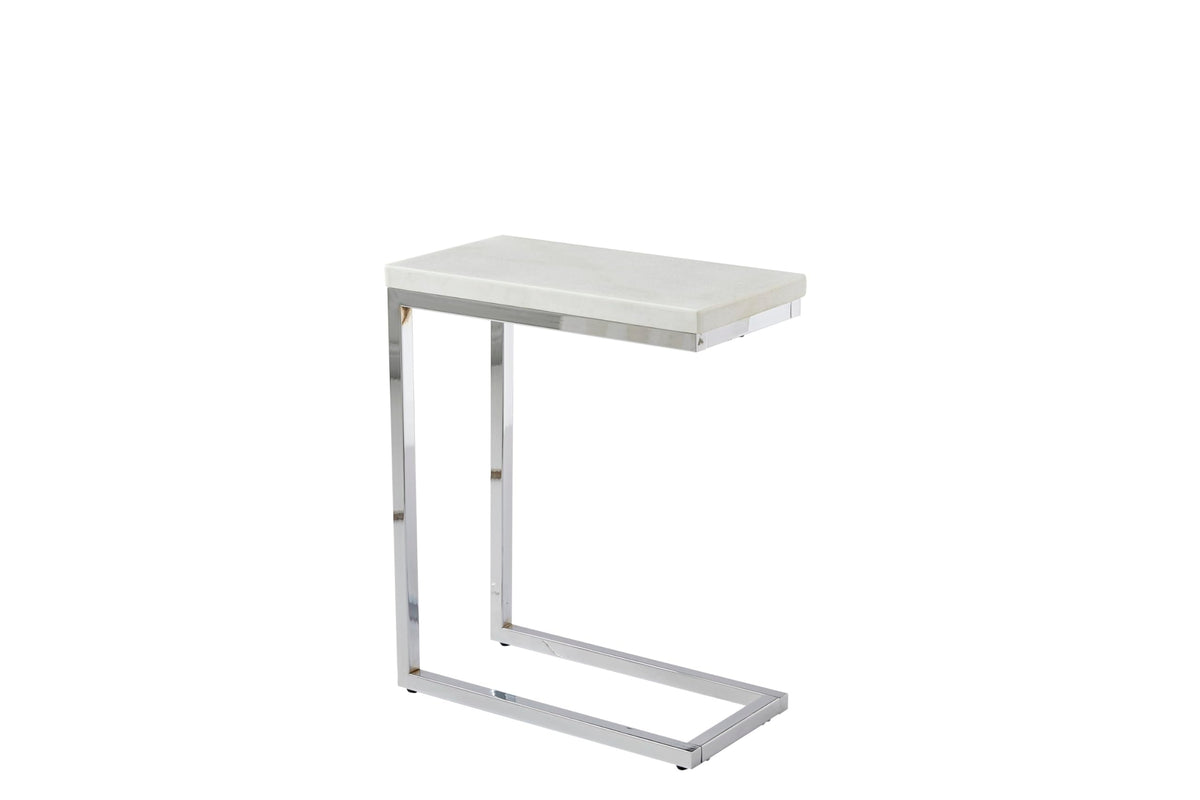 Modern and elegant, the Echo "C" Table adds surface area anywhere you need it. Great for use with a sectional or as an End Table, this table has a white marble top and a chrome-finished metal base that adds sparkle and shape to any room. Use in the middle of a large Sectional to give added work or drink surface.