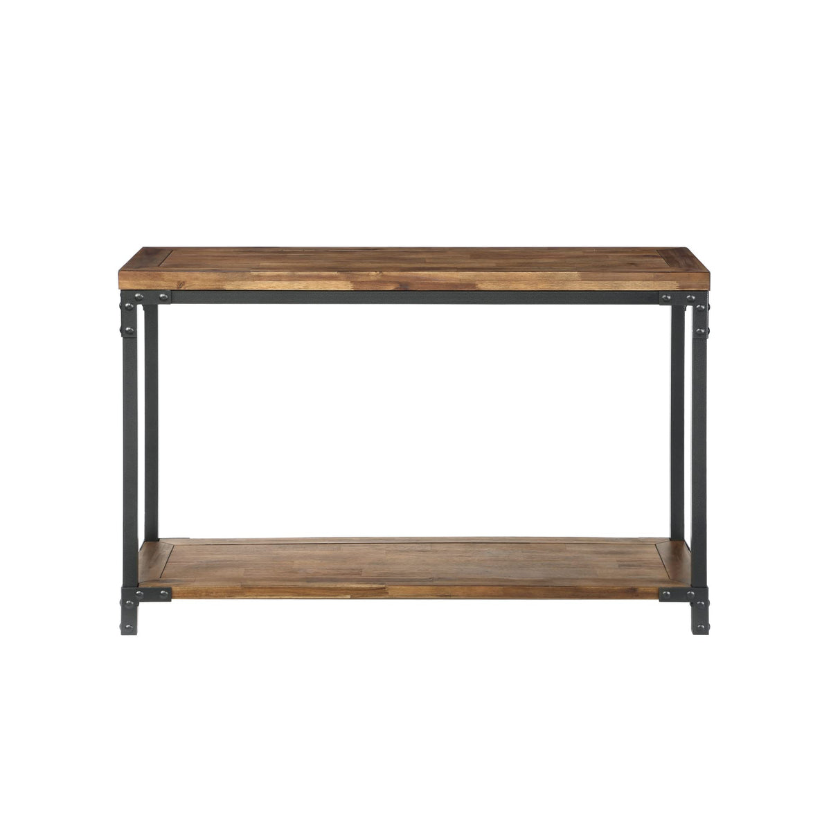 The Lantana Sofa Table By Steve Silver Furniture Features Acacia Veneers With Black Metal Frame, Exposed Rivets, Framed Top, Bottom Shelf And Antiqued Honey Finish.