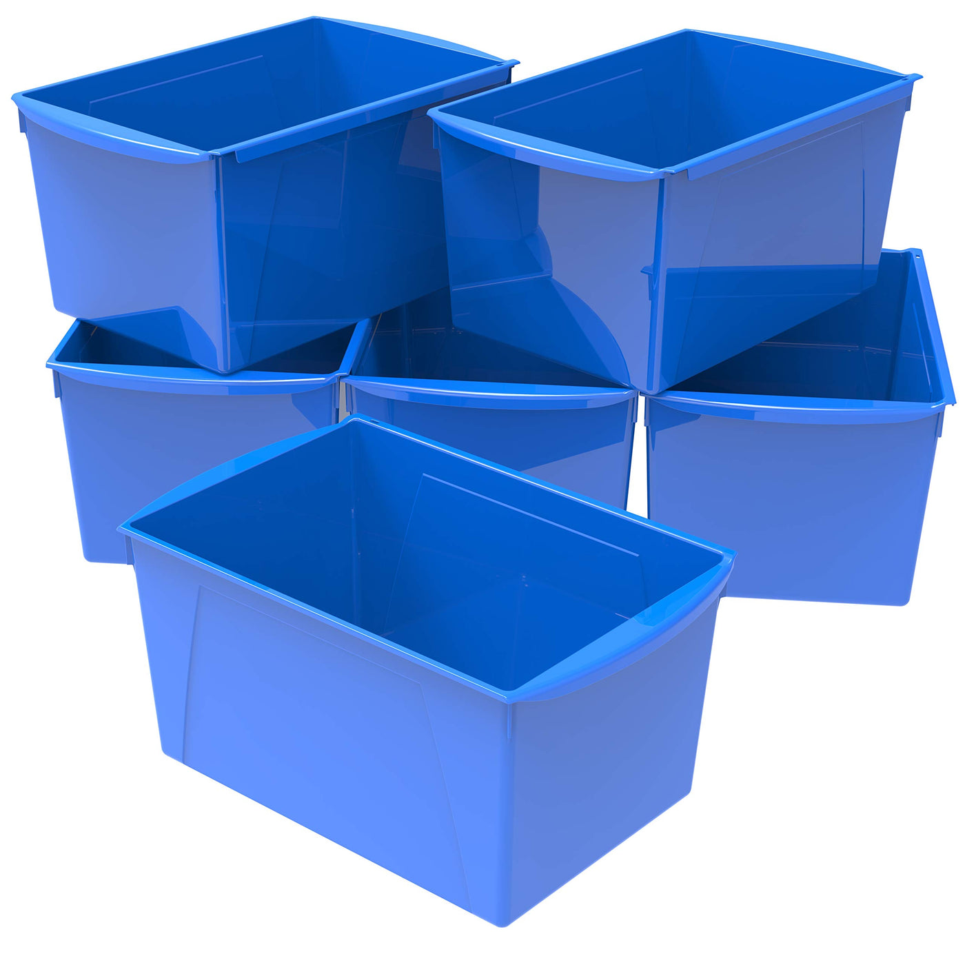 Storex Extra-Large Book Bin, Interlocking Plastic Organizer For Home, Office And Classroom, Blue, (71135U06C) (Pack Of 6)