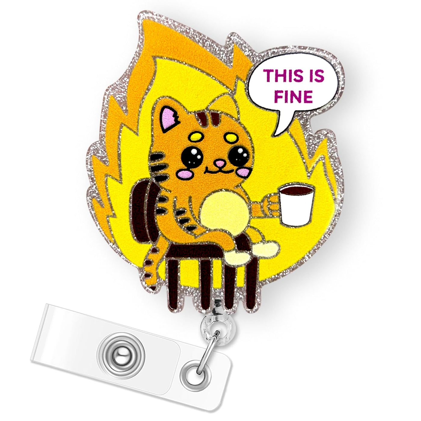 This Is Fine Cat Funny Acrylic Badge Reel Clip'Unique Badge Reel Is Not Just An Identification Accessory; It'S A Source Of Companionship And Inspiration. Each Easy Extension Is A Comforting Experience, As If A Close Friend Is Providing You With Steadfast Support. With Its Simple Yet Creative Design, It Not Only Enhances Your Professional Image But Also Brings A Special Sense Of Companionship To Your Everyday Work.Gifts For Nurses:Bydevia Nurse Badge Reel, The Perfect Accessory For Nurses, Doctors, And Nursing Students. Our Retractable Badge Reels Are Not Just Functional, They Also Add A Touch Of Fun And Personality To Your Work Outfit. As A Nurse, You Understand The Importance Of Improving The Mood Of Your Patients And Making A Positive Impact On Their Lives. Our Cute And Funny Badge Reels Are A Great Way To Start Conversations With Your Patients And Spread Positivity.Personalized Badge Reels:Our Badge Reels Are Specifically Designed For Nurses, With A Swivel Base That Ensures Your Id Card Always Hangs Straight, No Matter Where You Clip It. Our Badge Reels Are Retractable, Making It Easy To Scan, Swipe Or Read Your Id Card Without Having To Remove It From Your Clothing. Plus, Our Badge Reel Accessories Ensure That You Can Personalize Your Badge Reel To Suit Your Unique Style And Personality.So Why Settle For A Plain And Boring Badge Reel When You Can Have One That'S Both Functional And Fun? Got Bydevia Nurse Badge Reel And Add A Touch Of Personality To Your Workday.