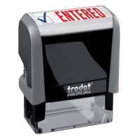 Self-Inking Trod At Print Message Stamp With The Phrase Entered. This Self-Inking Stamper Features A Replaceable Two Color Blue And Red Ink Pad That Gives You Perfect Impressions Every Time You Stamp. Trod At Print Ink Is Water Based And Not Suitable For Glossy Paper. For Best Results, Use Trod At 6/4912/2 Replacement Ink Pads In Your Entered Stamp.