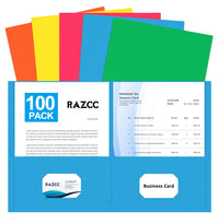 Two Pocket Folders, Razcc 100 Pack File Folders With Pockets Fit Letter Size Paper, Thick Paper File Folder For School Office Business Home, Assorted 5 Colors
