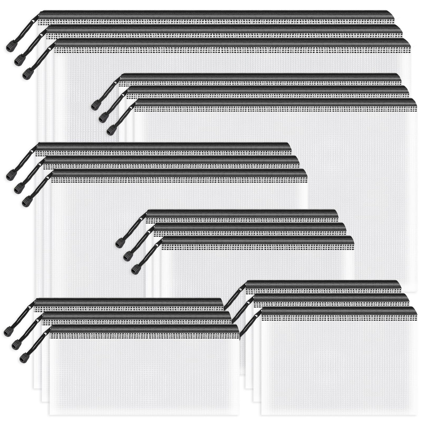 Umriox Zipper Mesh Document Pouch, 6 Assorted Size (Black, 18 Packs), Clear Zipper Pouches, Waterproof Travel Pouch For Office S