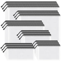 Why Ues It? Smooth Zipper: Plastic Material, The Sealed Zipper Can Prevent Small Items From Falling, Smooth And Strong. Translucent Mesh: The Translucent Design Maintains Visibility While Protecting Private Privacy. Products Specifications: Package Include: 18Pcs Plastic Zipper Pouch Size: 3*B4 (14.9 X 11.0 Inches), 3*A4 (13.0X9.0 Inches), 3*B5 (11.6 X 8.3 Inches), 3*A5 (9.5 X 7.1 Inches), 3*A6 (9.2X 4.7 Inches), 3*B6 (7.7 X 5.5 Inches) Color: Black Material: Pvc