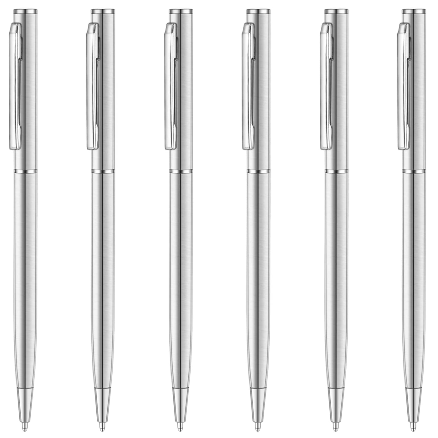 Notes:100% Money Back Guarantee: Please Feel Free To Contact Us For Refund Or Replacement If You'Ve Been Unsatisfied For Our Products. Features:Ultra Thin And Lightweight Design, Classy Stainless Steel Lookretractable Ball Pen, Capless, No Need To Worry That The Cap Would Be Losttwist Feature Prevents The Pen Tip From Accidently Inking Your Pocketinexpensive Upgrade From The Multi-Packs To Primary Writing Instrument.Good Quality, Writes Smoothly, No Skips Or Lags Recommended Occasions:School: Notes/Homework/Examoffice: Signing Checks/Taking Notes/Filling Out Formsprofessionals: Detective/Executive/Lawyer/Teacher/Medical Officer/Attroney/Boss/Policejournalingwedding Guest Registry Gift Ideas:Birthdaychristmasfather'S Daygraduationannual Bonusoffice Specifications:Material: Stainless Steelpen Weight: 1 Ozpackage Weight: 2 Ozpen Size: 5.5' Length 0.5' Widthpackage Size: 6.5'X1.5'X0.5' What'S In The Package?6 X Slim Stainless Steel Ball Pens