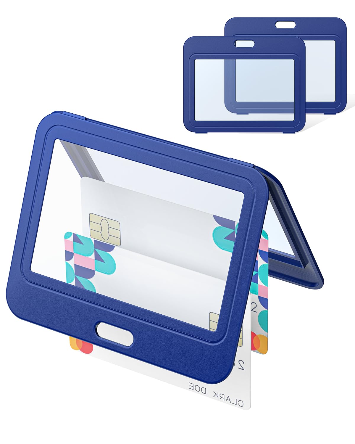 Uniclife 3 Pack Id Badge Holder With Double-Sided Windows Horizontal Hard Plastic Case Blue Card Protector Pouch For Office Scho