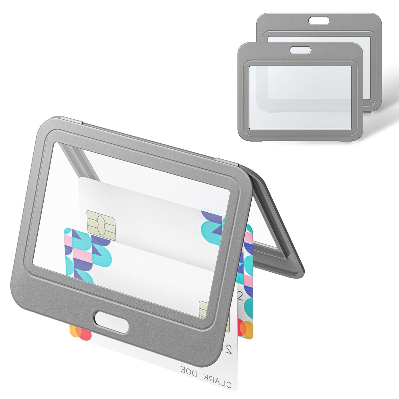 Uniclife 3 Pack Id Badge Holder With Double-Sided Windows Horizontal Hard Plastic Case Grey Card Protector Pouch For Office Scho
