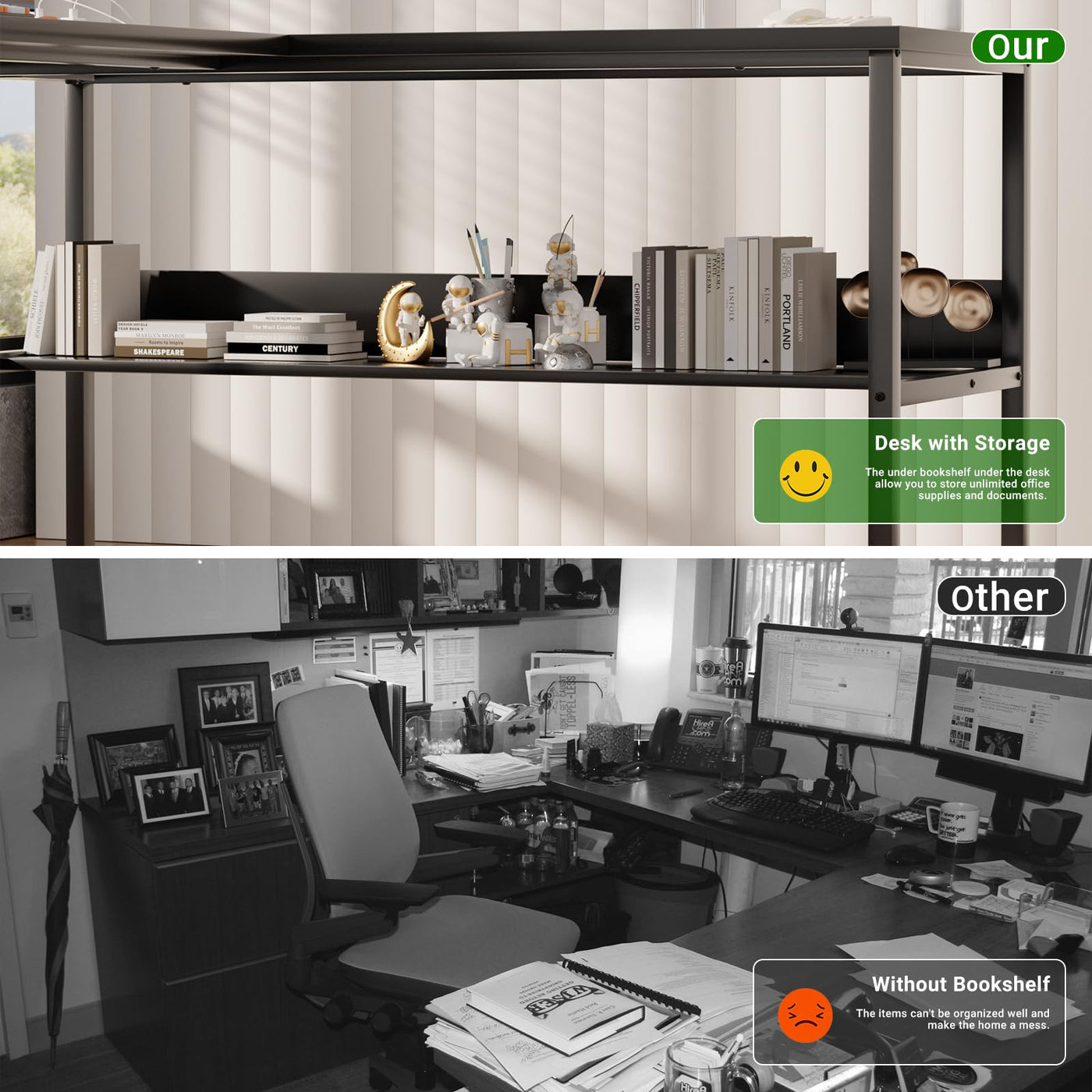 ?Magic Power Outlets And Usb Charging Ports? It Is Cool And Extremely Helpful That The Computer Desk Comes With A Nice Inset Usb And Outlet Charging Station. The L Shaped Desk Is Built In 3 Power Outlets And 2 Usb Charging Ports. It Is A Nice Touch To Provides Extra Power Support For Your Computer, Printer, Scanner, Phone, Tablet, Gaming Gear Etc, Which Provides A Great Convenience To Your Life When You Are Working, Writing Or Playing Games. | ?Reversible L Shape & Long Desk Design? With Reversible Design, The Office Desk Is Configurable To 3 Different Ways. It Is Configured Either On The Right Side, Left Side Or Straight Long Desk As Your Personal Preference, Which Provides You A Fully Functional Workplace For Whatever Project You Are Working On. You Can Use One Side As A Work Area And Other Side For Gaming Or Writing Area. | ?Functional And Stylish Design? With The Combination Of Functional And Sleek Design, The Corner Desk Not Only Includes Practical Performance Of Modern Furniture, But Also Bring You A Nice Addition To Any Room. The Storage Shelves Underneath Are Great For Extra Storage And Provide Enough Spaces For Storing Books, Magazines, Devices And Hosts. That Leaves Plenty Of Desk Space Open To Work On. | ?Multipurpose And Easy To Assemble? This Is A Great Desk For Small Space. It Is Not Too Small Nor Too Big And Does Not Take Up Much Space. The Configurable Design Means It Can Fits Into Almost Any Space And Have Desk Space At Both Sides For Productivity. This Desk Can Sit In A Corner, Large Home Office Or Smaller Work Nooks As A Computer Desk, Office Desk, Gaming Desk, Study Desk, Work Desk. The Instruction Is Easy And Straightforward. Putting It Together Is Easy And Painless. | ?Sturdy And Roomy?The Writing Desk Is Made From Very Thick Engineered Wood And Rugged Metal Frame That Are Built To Last. It Is Very Sturdy, Comfortable, Maneuverable And Spacious. Its Sturdy Construction Has A Excellent Load-Bearing Capacity To Support Up To 500 Lbs, And Provide Plenty Of Space For Your Computer, Monitor And Still Have Work Room For Your Remote Work And Home Office. It Also Can Add Vitality And Style To Your Workstation And Make Your Room Cozy And Complete. The Adjustable Non-Slip Foot Pad Also Ensure Stability On Uneven Ground.