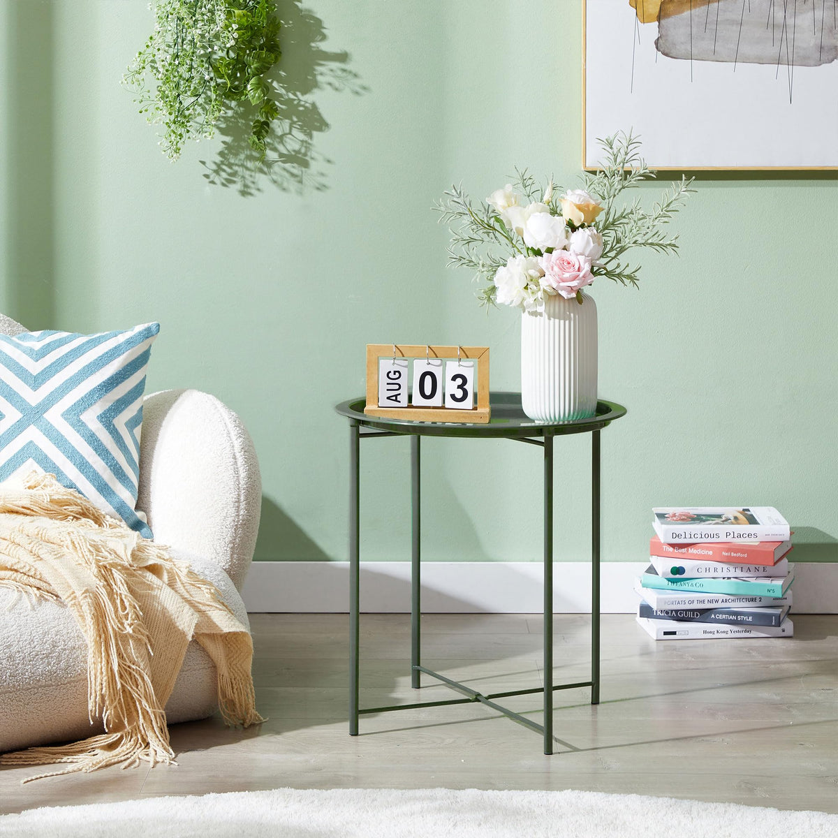 Vecelo Side/End Table, Folding Round Metal Anti-Rust And Waterproof Outdoor Or Indoor Tray For Living Room Bedroom Balcony And Office, 1 Pcs, Dark Green