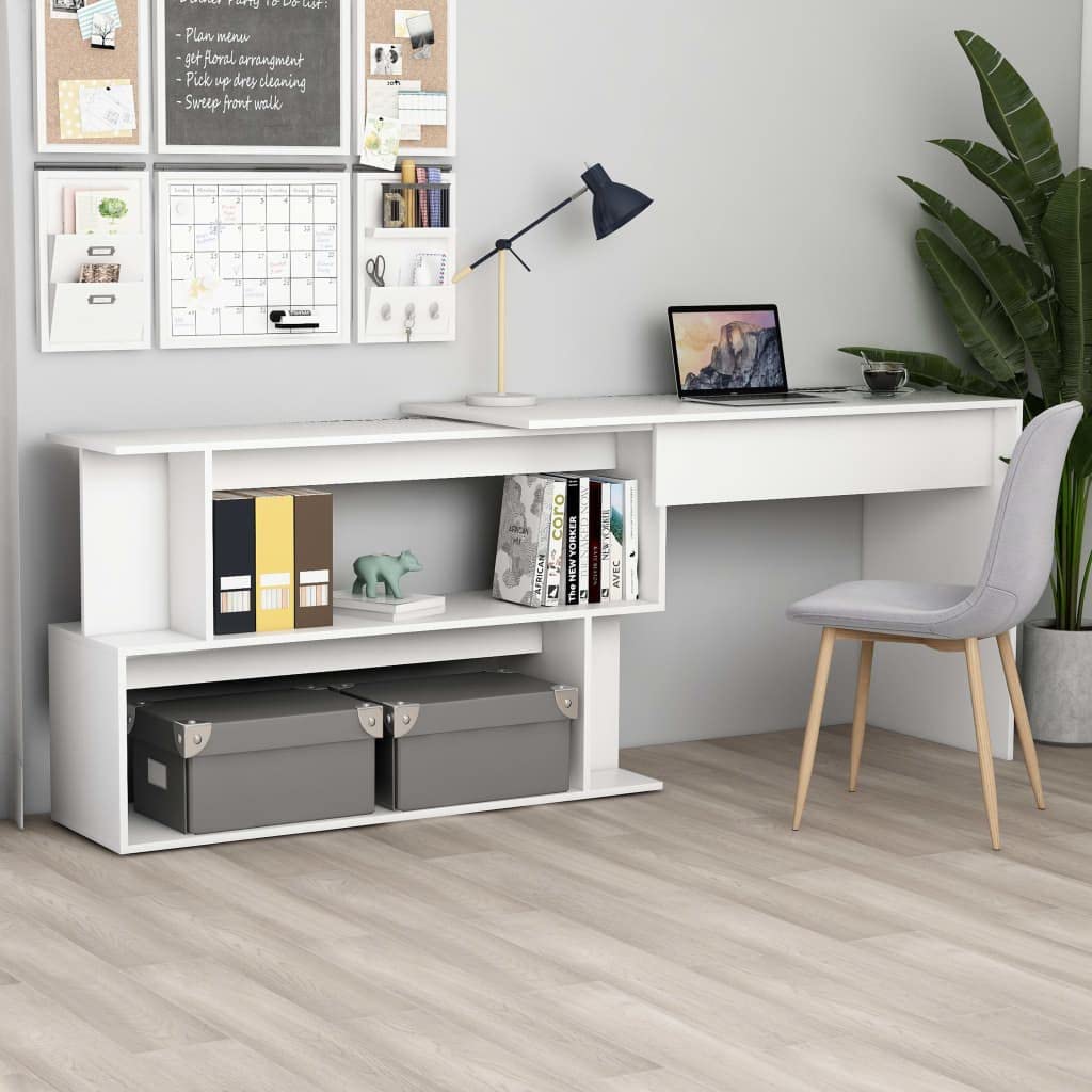 vidaXL Corner Desk in White, 78.7"x19.7"x29.9", Engineered Wood, Rotatable Design, Perfect for Dorms, Offices, and Small Spaces, Elegant Study Desk with Spacious Compartments
