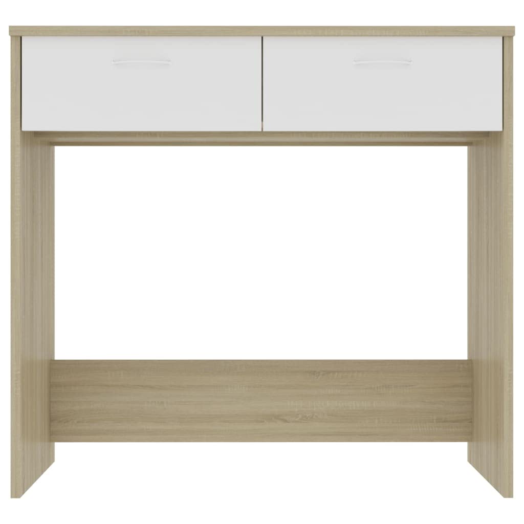 vidaXL Desk, Standing Computer Desk with Drawers, Home Office Desk, Workstation for Living Room, Scandinavian, White and Sonoma Oak Engineered Wood