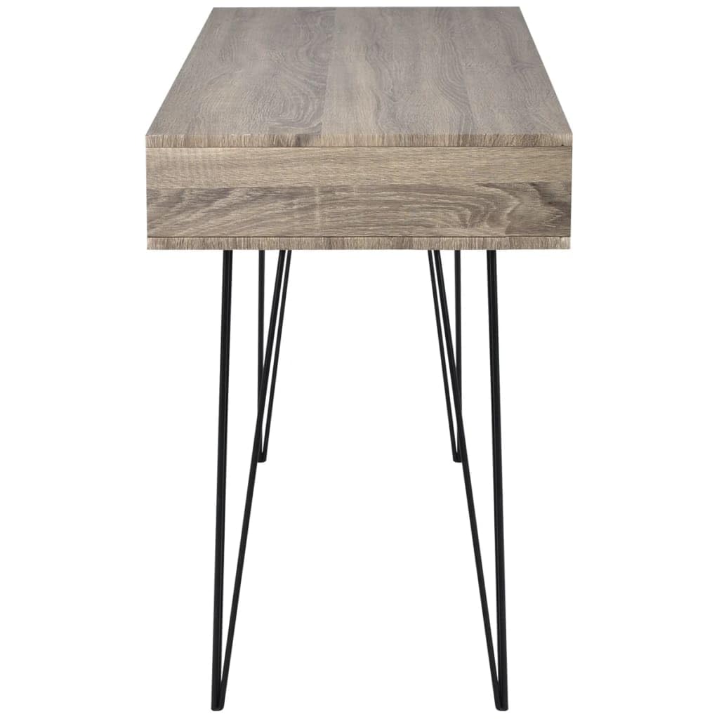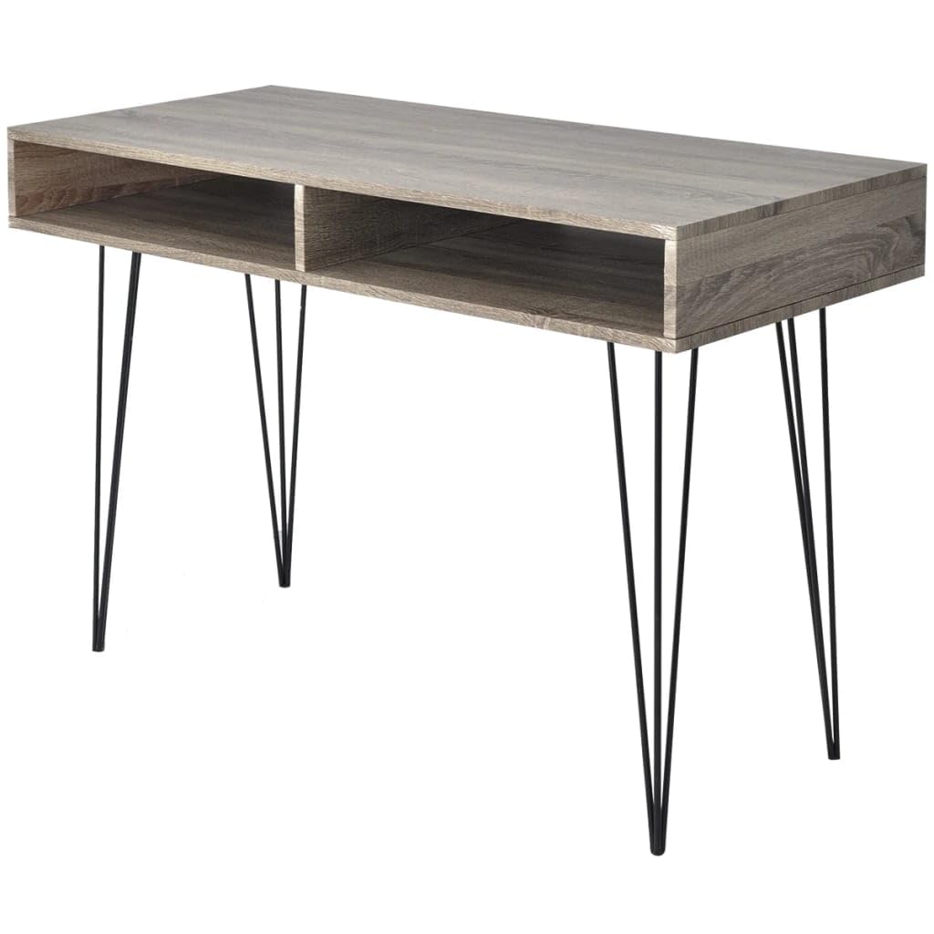 This remarkably functional piece of furniture will liven up any home or office environment. Featuring a high-quality MDF top and solid metal legs, this desk is very durable, stable and sturdy. The spacious table top provides large space for placing your computer, laptop, table lamp, etc. Its two compartments are great for keeping all kinds of smaller items like keys, notepads, pens, and other knick-knacks neatly organized and within reach.